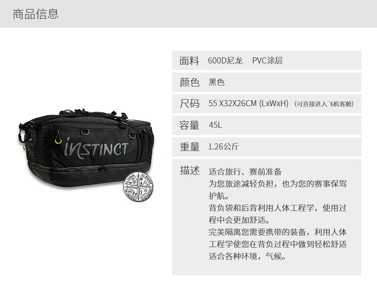 INSTINCT DUFFEL PACK 45L 多功能户外驼包