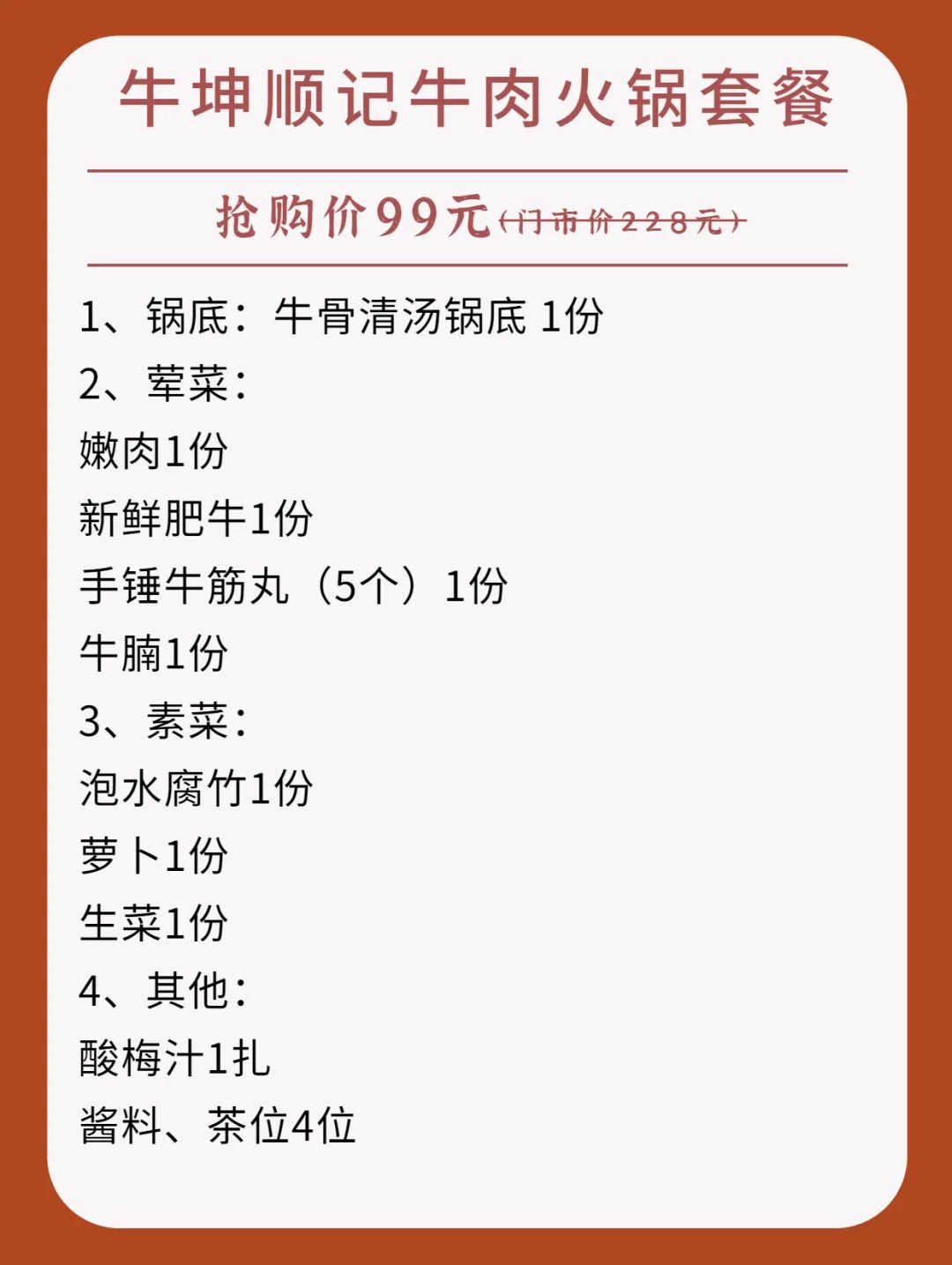 抢购截止日期8月31号【天河区丨2店通用】现切牛肉新鲜看得见!¥99抢「牛坤顺记」牛肉火锅套餐=牛骨清汤锅底+嫩肉+新鲜肥牛+牛腩+生菜+餐位等