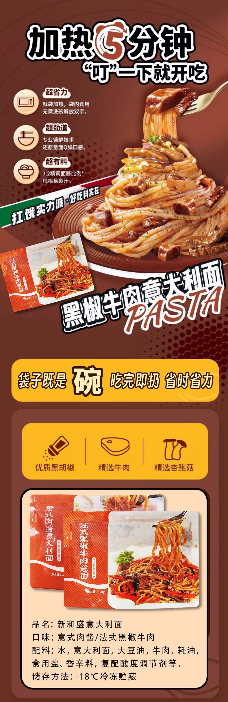 新和盛意大利面(法式黑椒牛肉/意式肉酱) 300g/袋 30袋/件