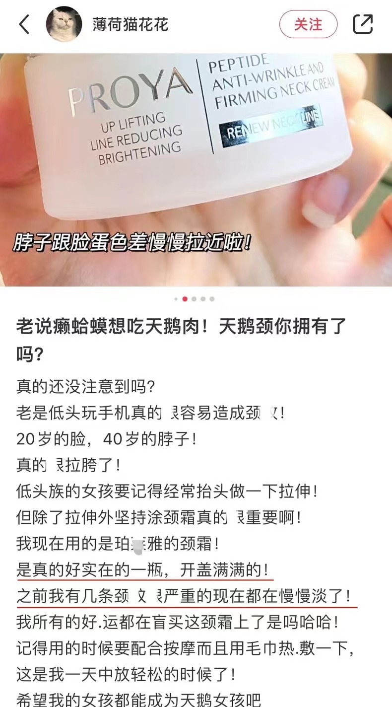 珀L雅的颈霜没有做营销