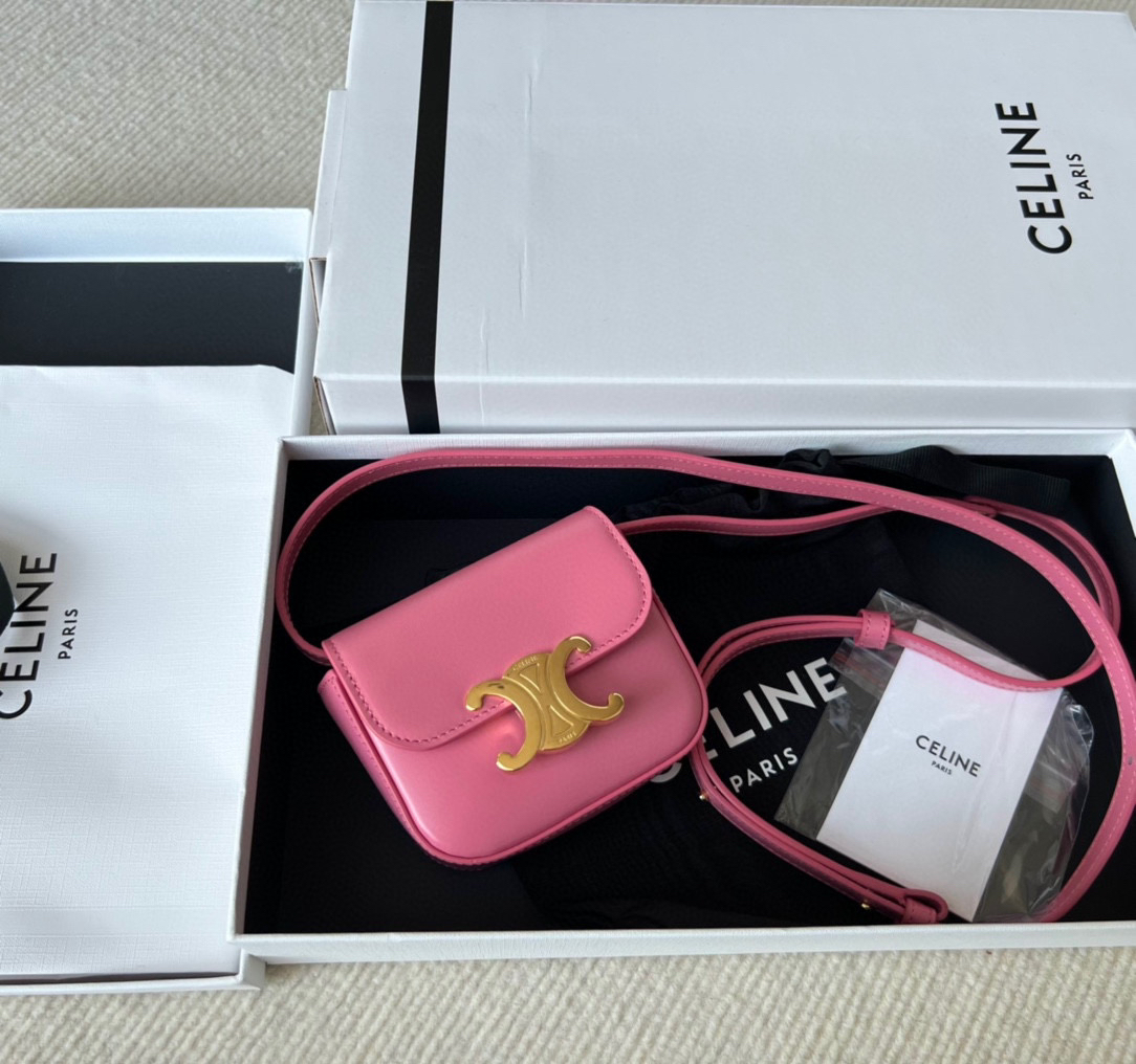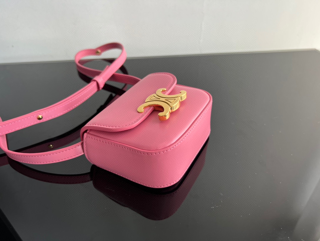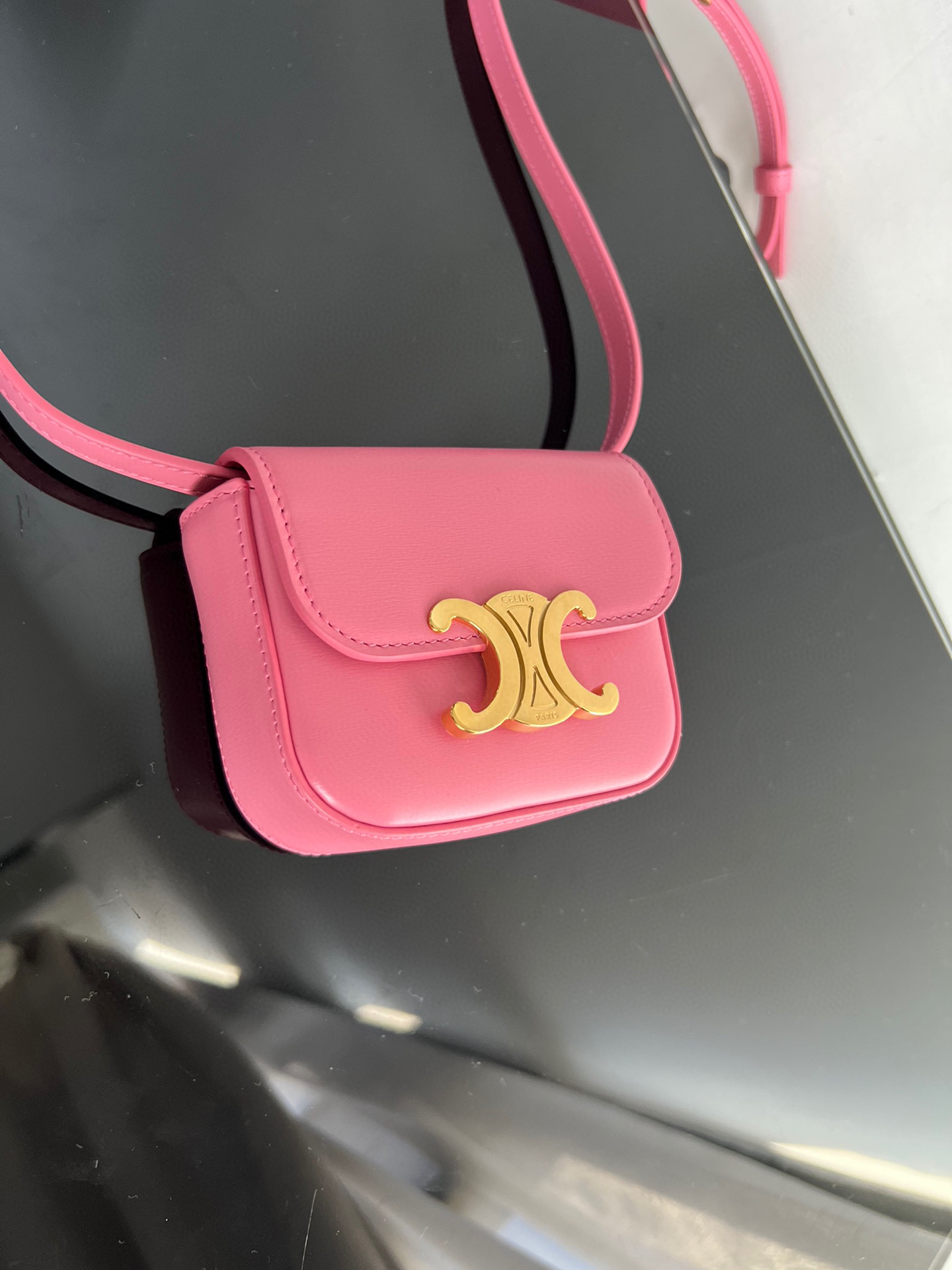 𝐂𝐄𝐋𝐈𝐍𝐄 新款迷你凯旋门TRIOMPHE亮泽牛皮革手袋,尺寸:11 X 8 X 4cm,原厂牛皮+复古亮面五金,重工打造【放不下手机】