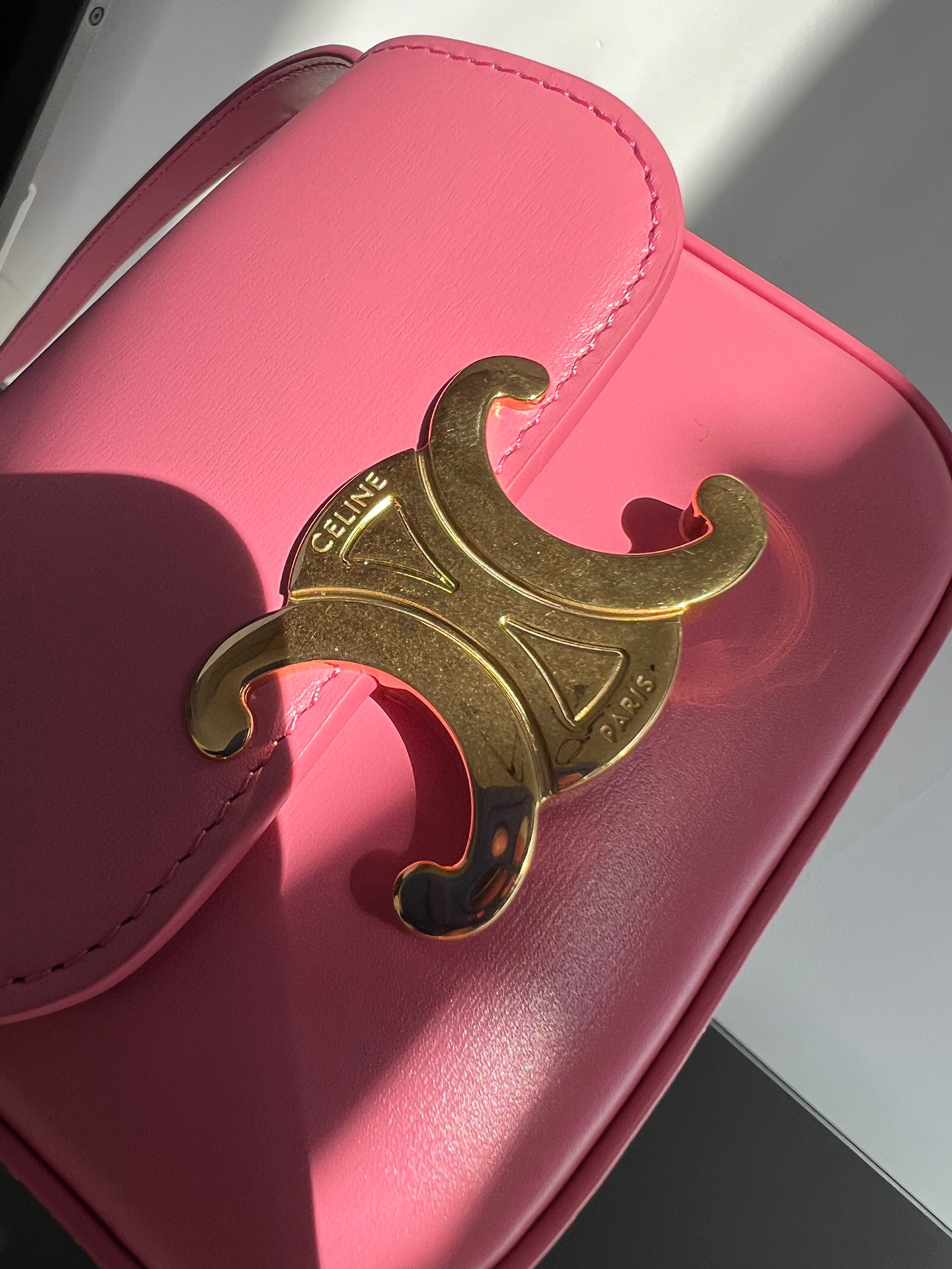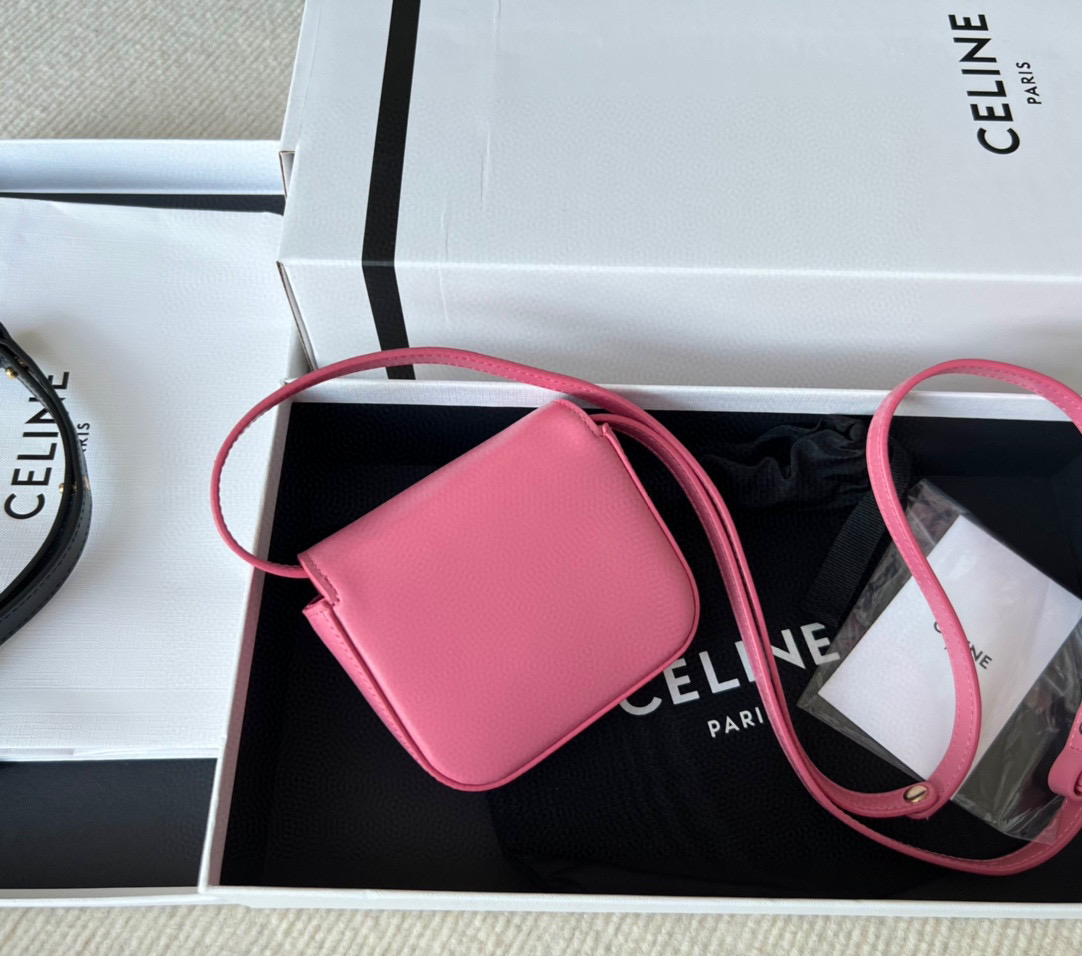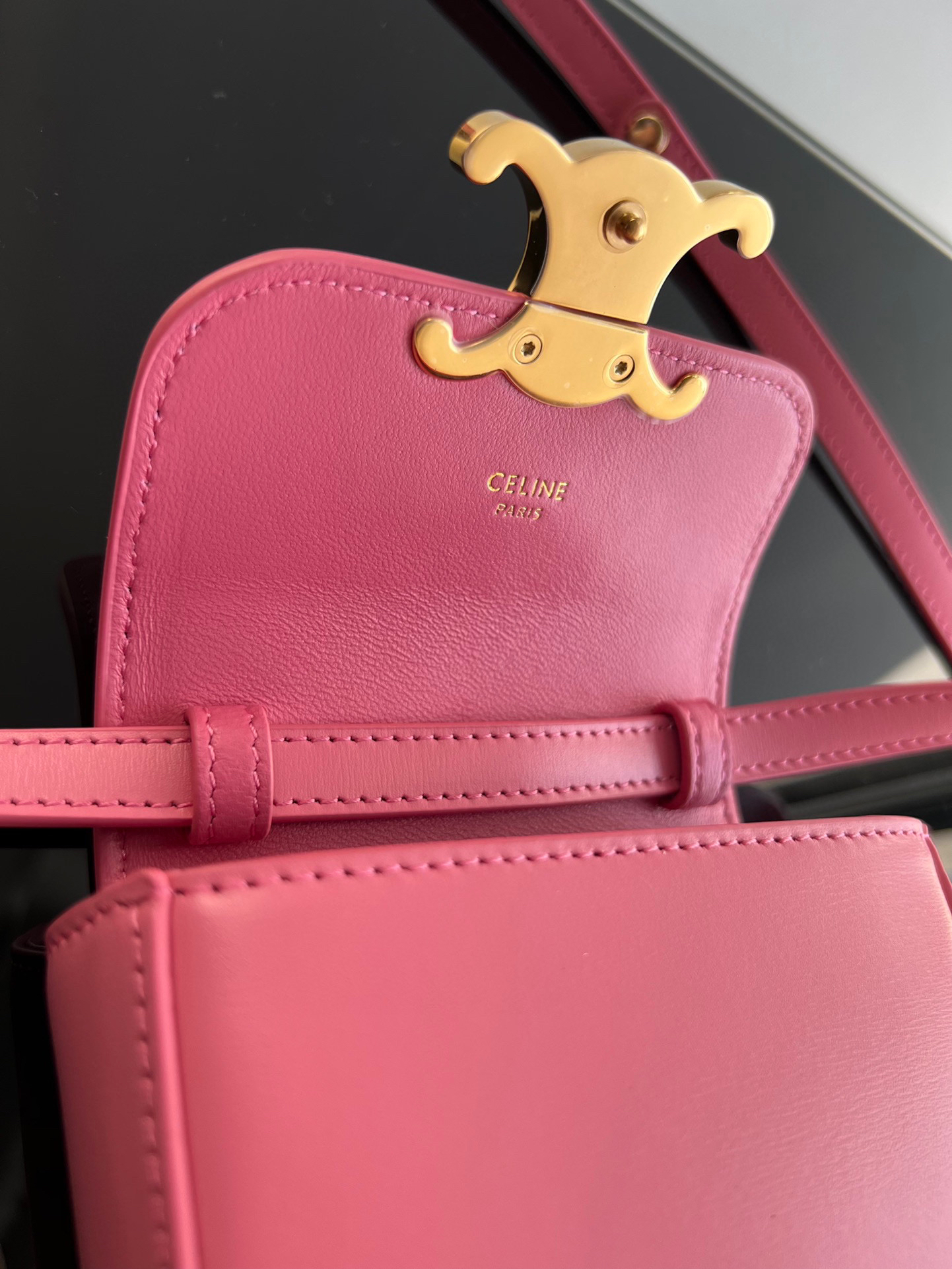 𝐂𝐄𝐋𝐈𝐍𝐄 新款迷你凯旋门TRIOMPHE亮泽牛皮革手袋,尺寸:11 X 8 X 4cm,原厂牛皮+复古亮面五金,重工打造【放不下手机】