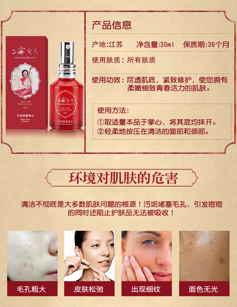 临期特价*26年10月*上海女人玫瑰晨露精华液30ml