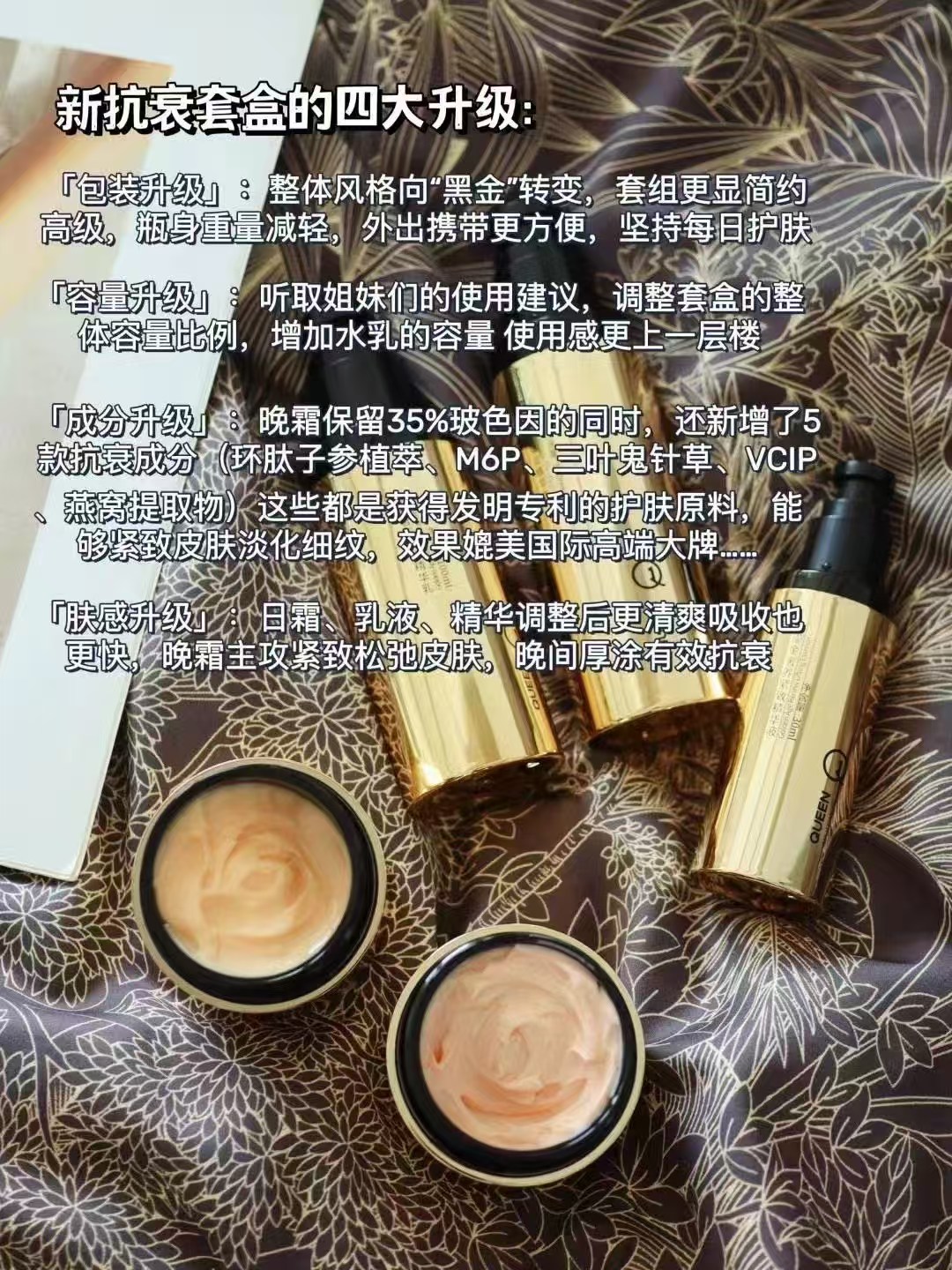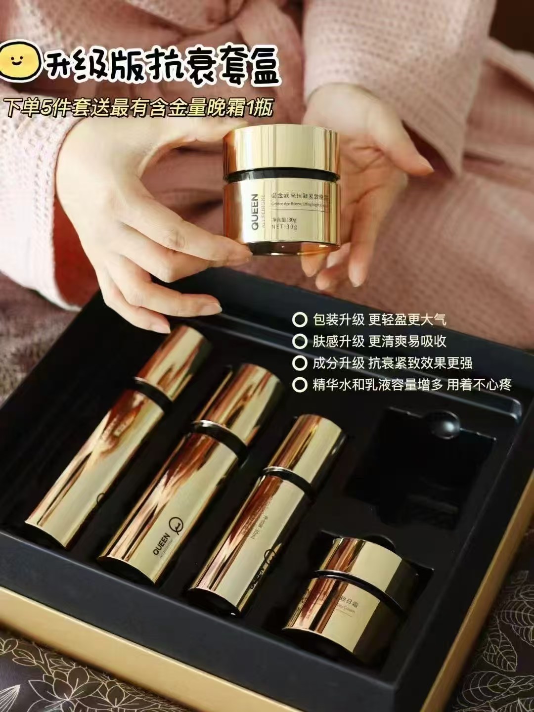 【新升级抗衰女王新套盒】高端护肤品系列!包含精华水、精华液、精华乳、日霜、晚霜!