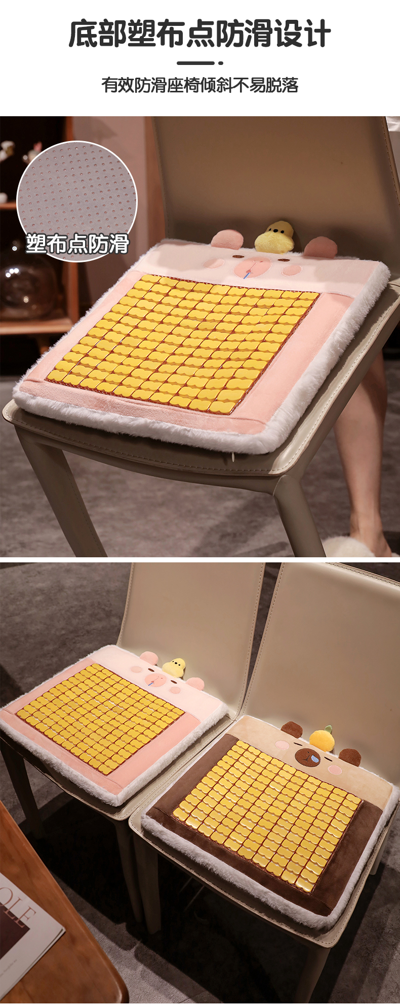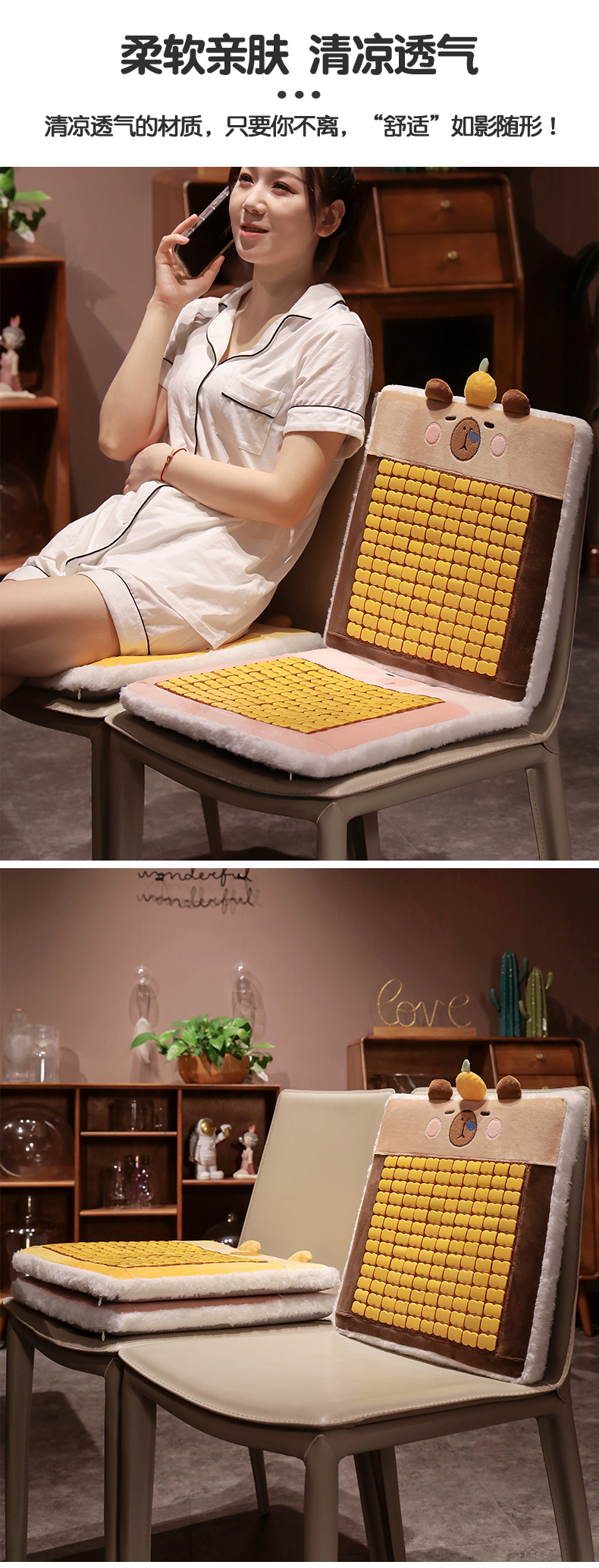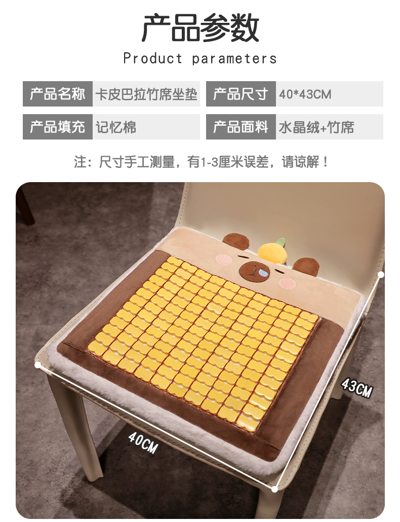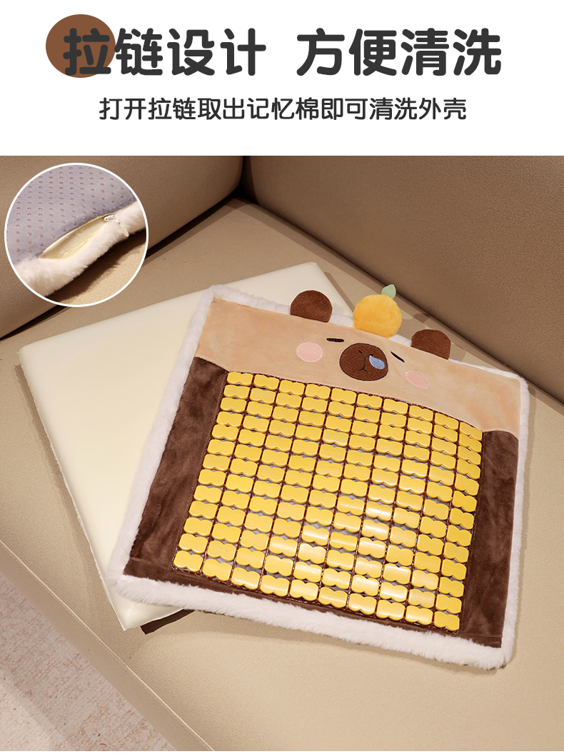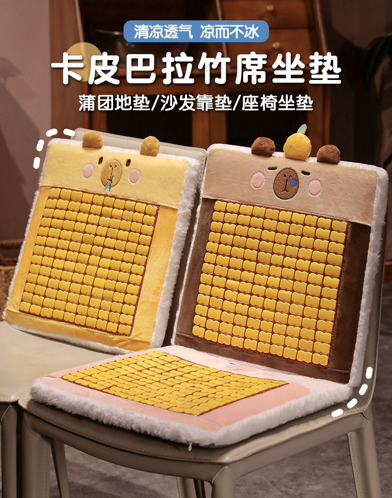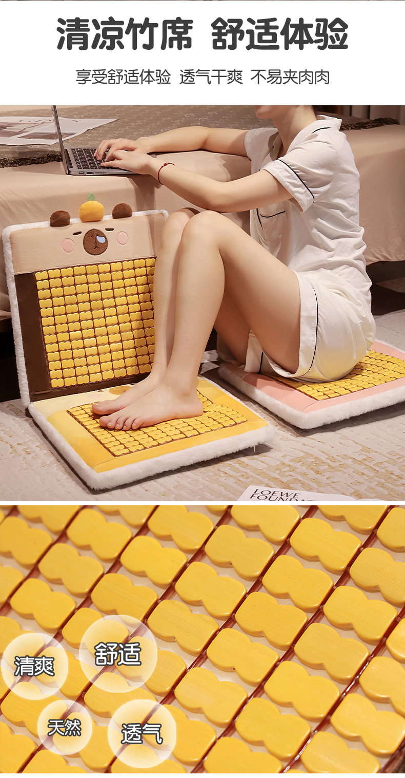 自然醒卡皮巴拉竹席记忆棉坐垫夏季凉席屁垫椅子垫冰垫办公室座垫QYL