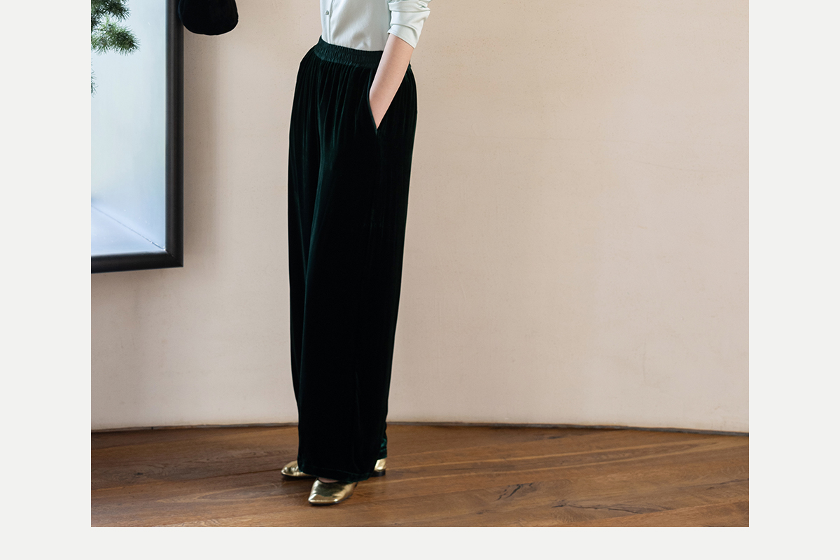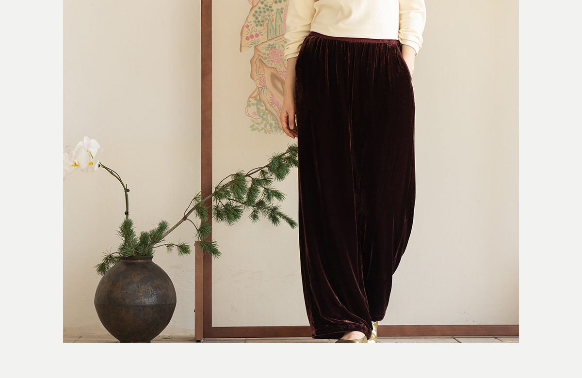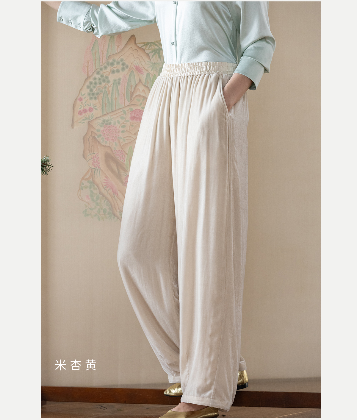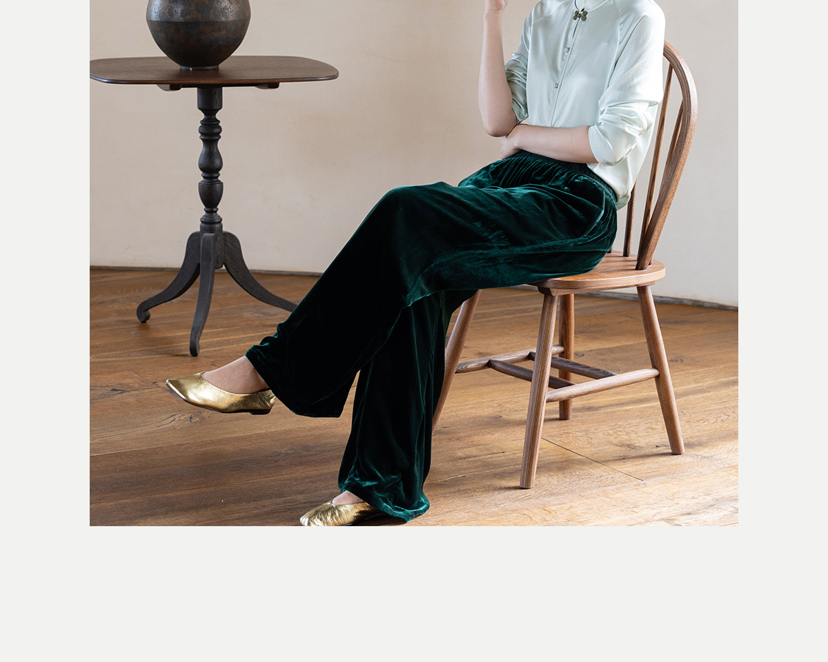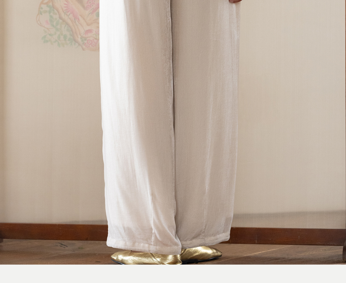 牧衣游原创 丝绒净色裤子女垂感显瘦禅意简约宽松百搭休闲裤 砚池
