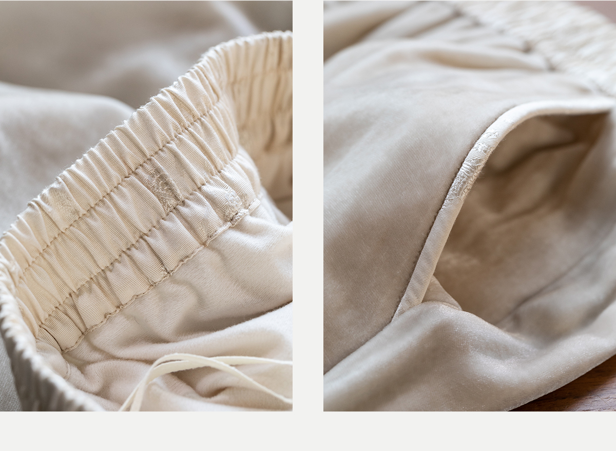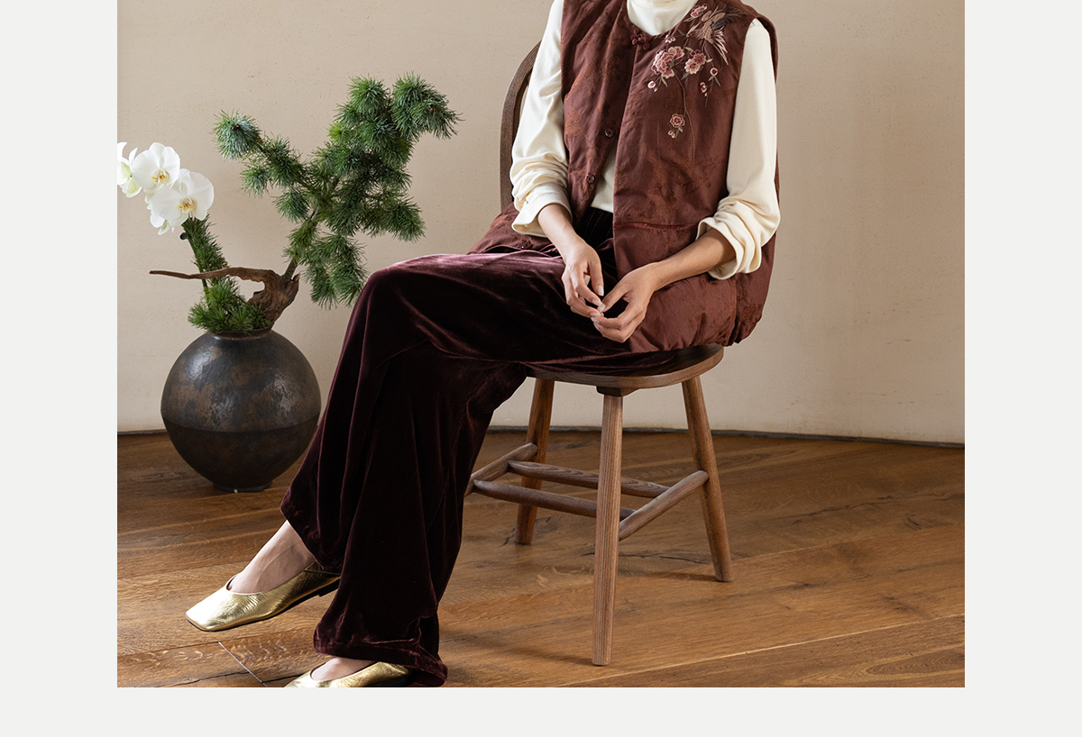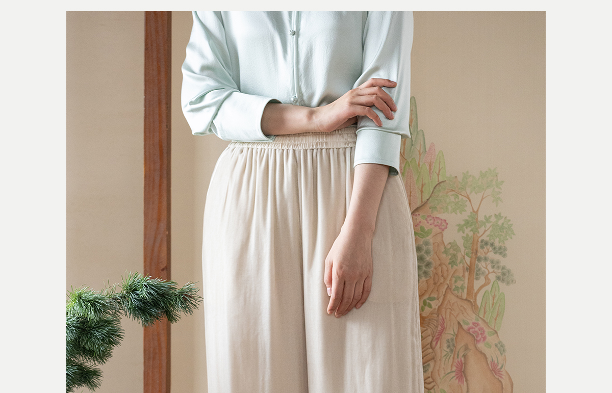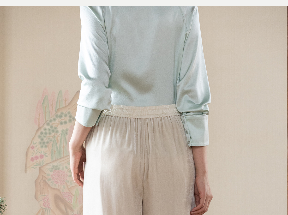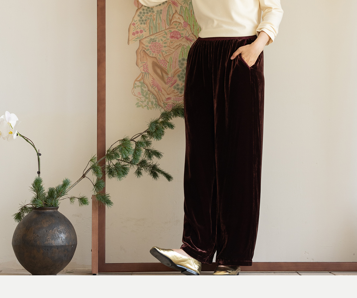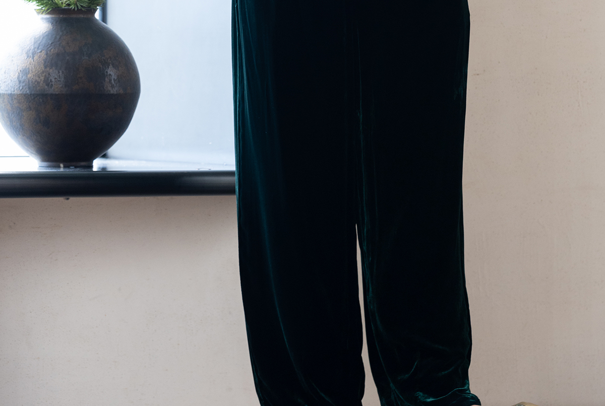 牧衣游原创 丝绒净色裤子女垂感显瘦禅意简约宽松百搭休闲裤 砚池