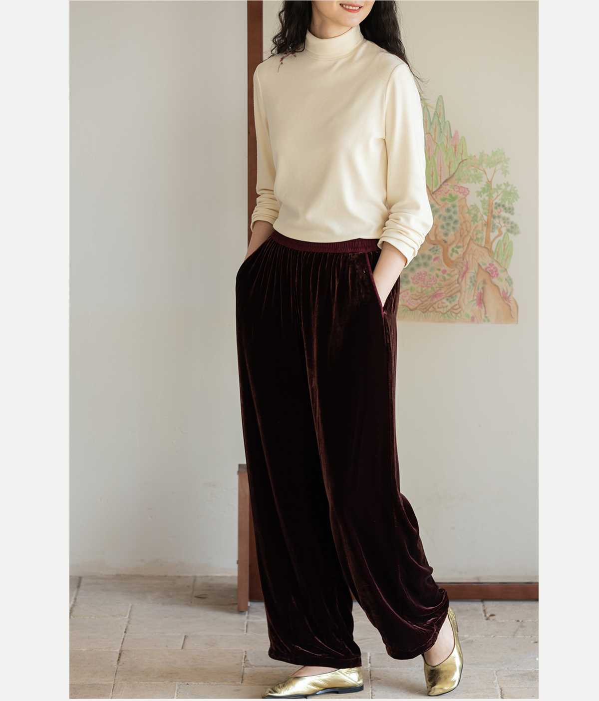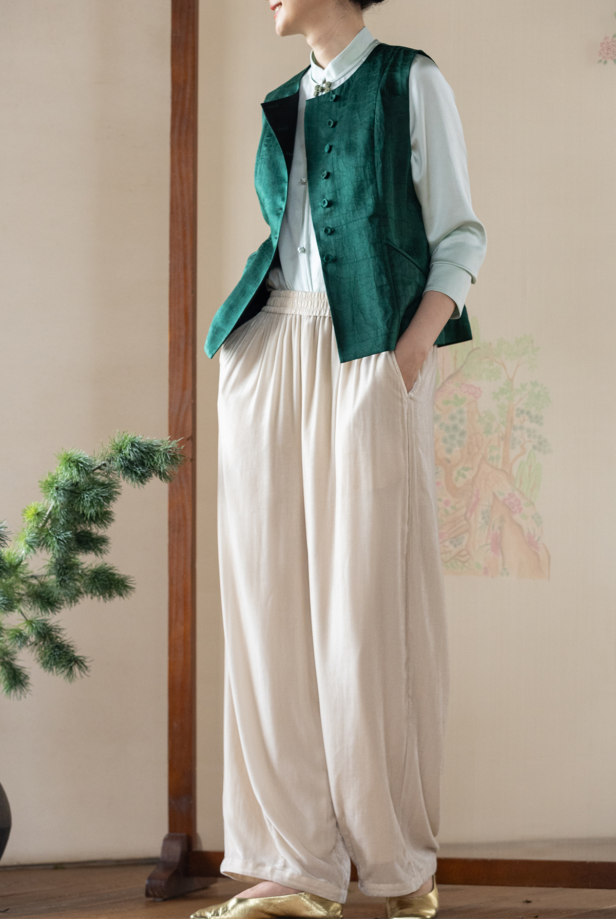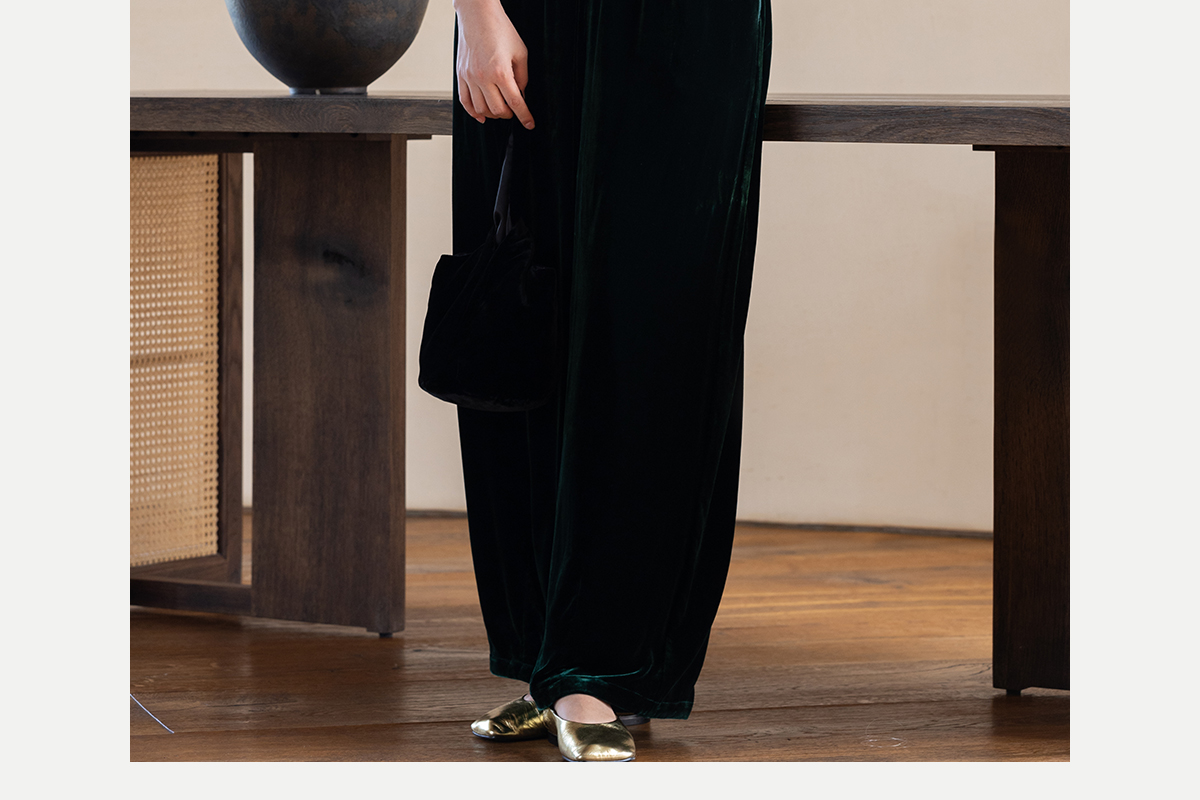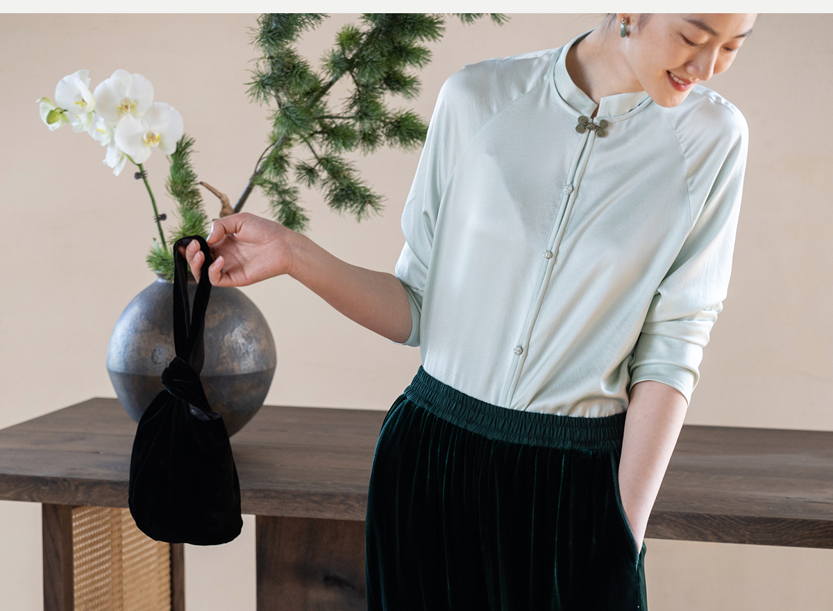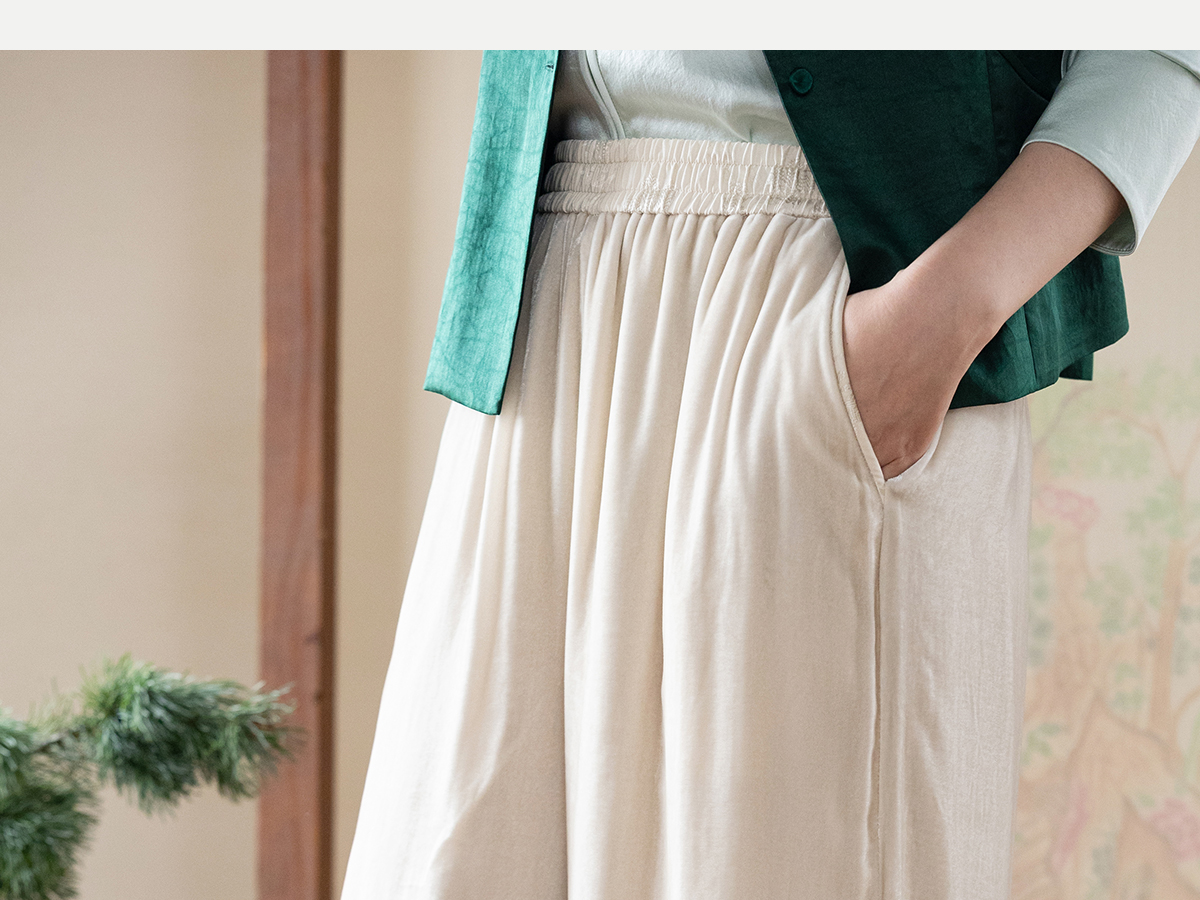 牧衣游原创 丝绒净色裤子女垂感显瘦禅意简约宽松百搭休闲裤 砚池