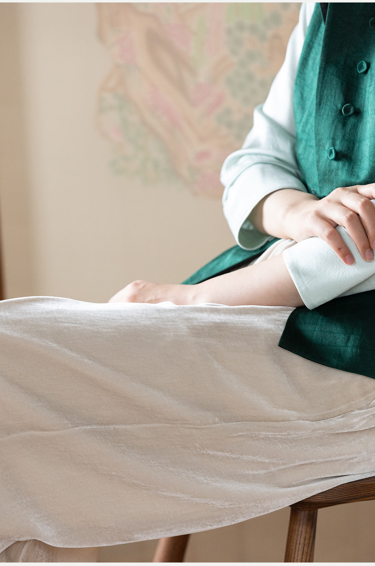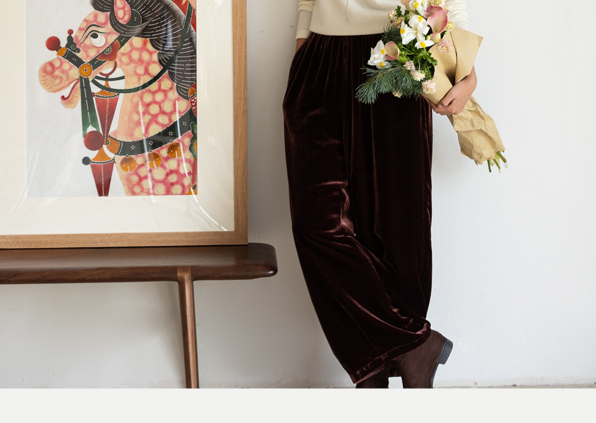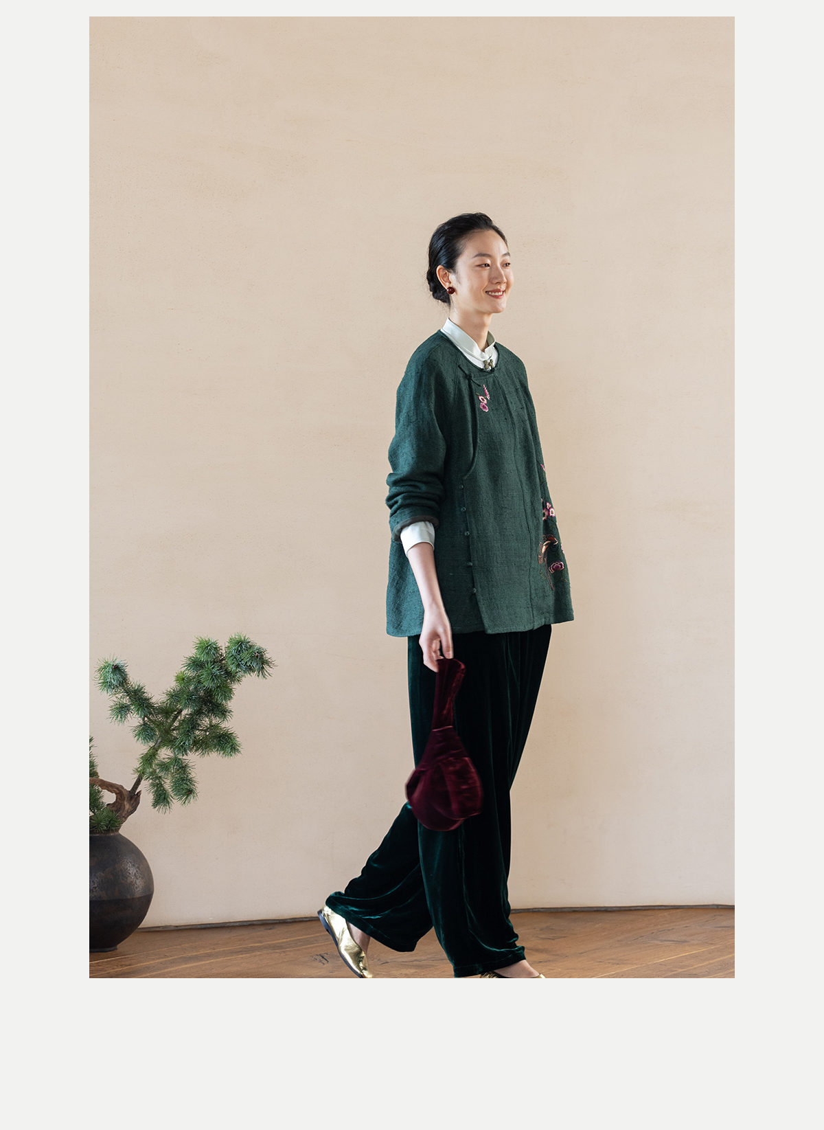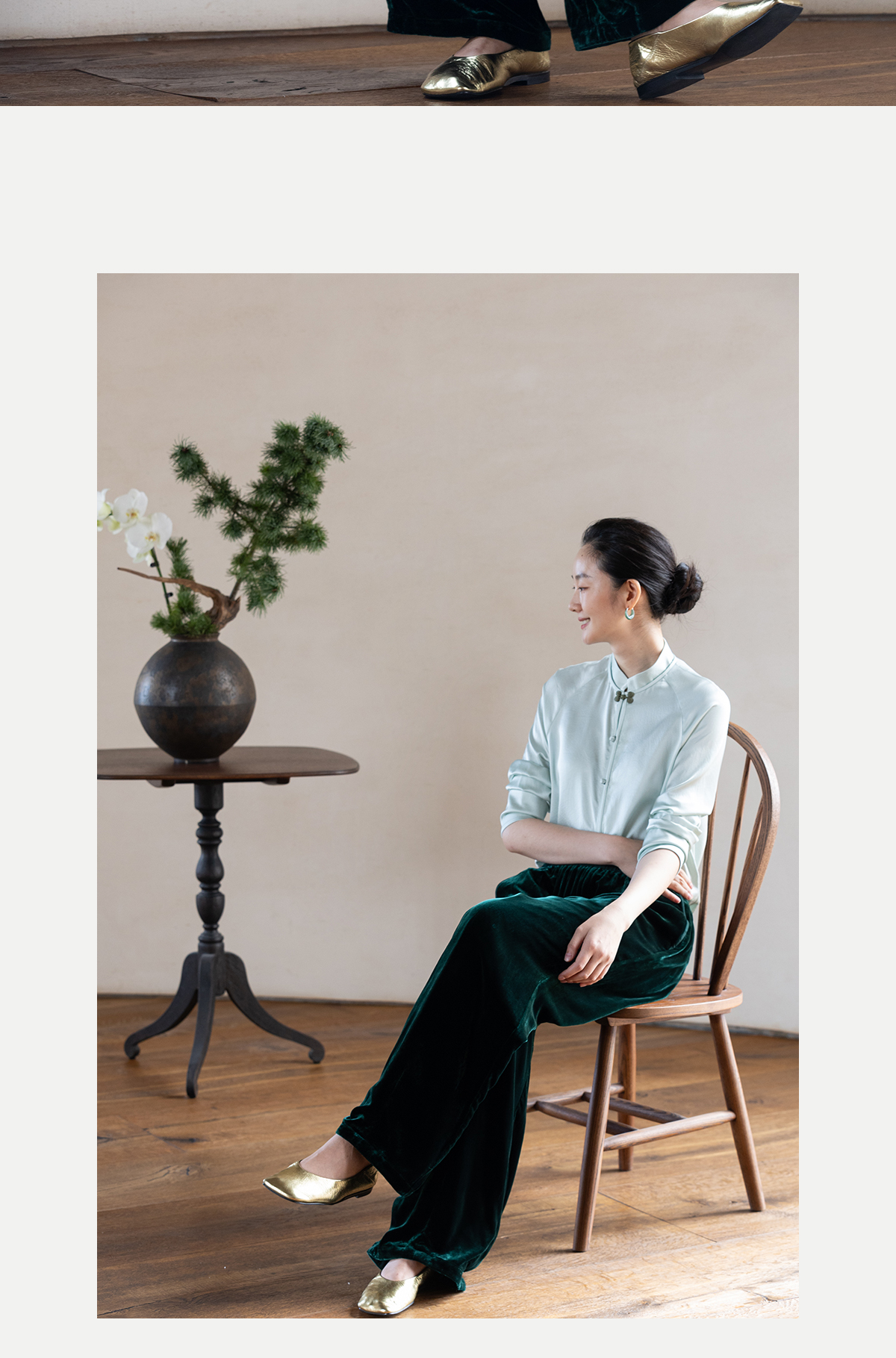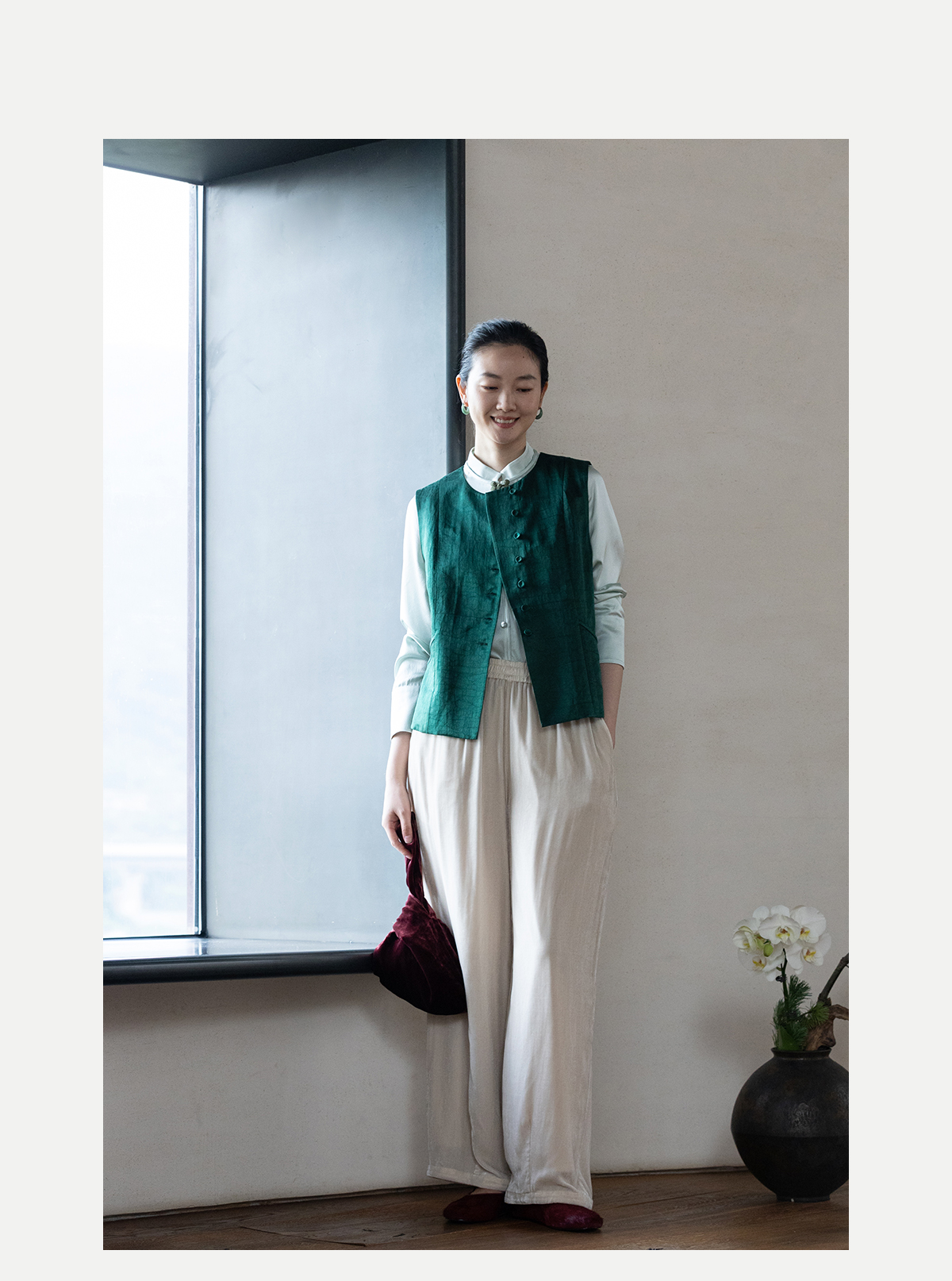 牧衣游原创 丝绒净色裤子女垂感显瘦禅意简约宽松百搭休闲裤 砚池