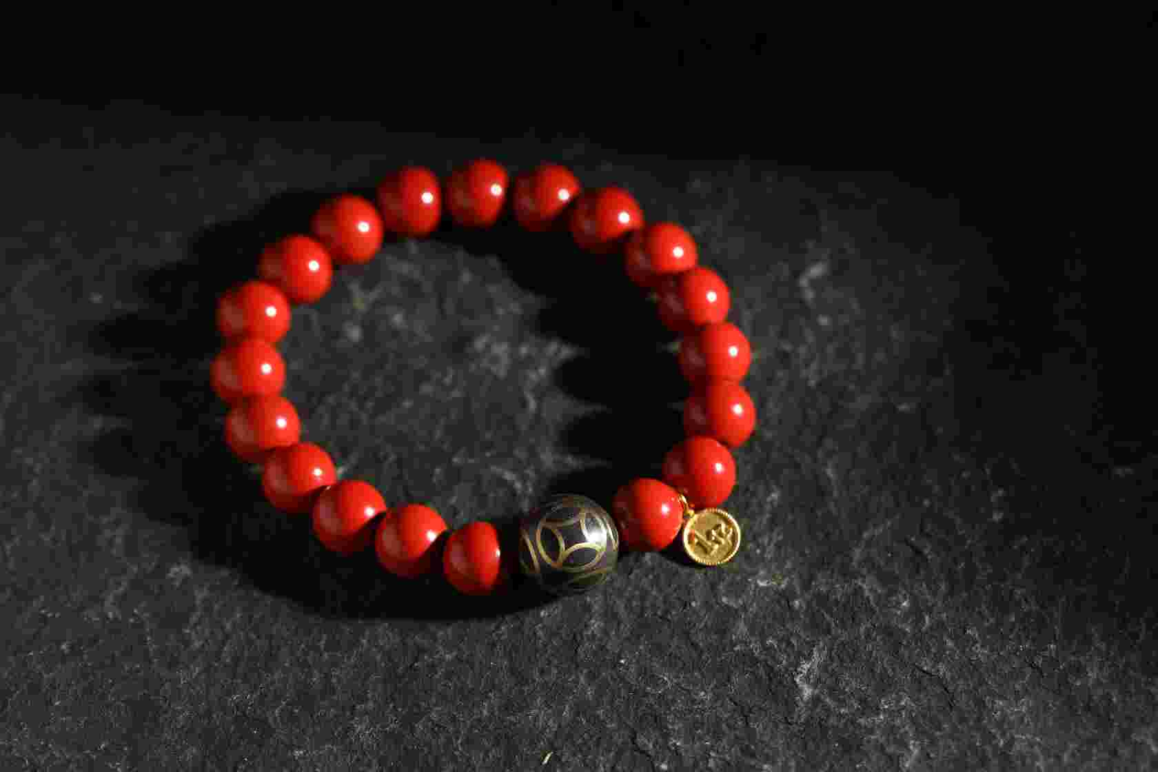 YHZS0063°朱砂+镶铜香灰珠手串1.0*19
