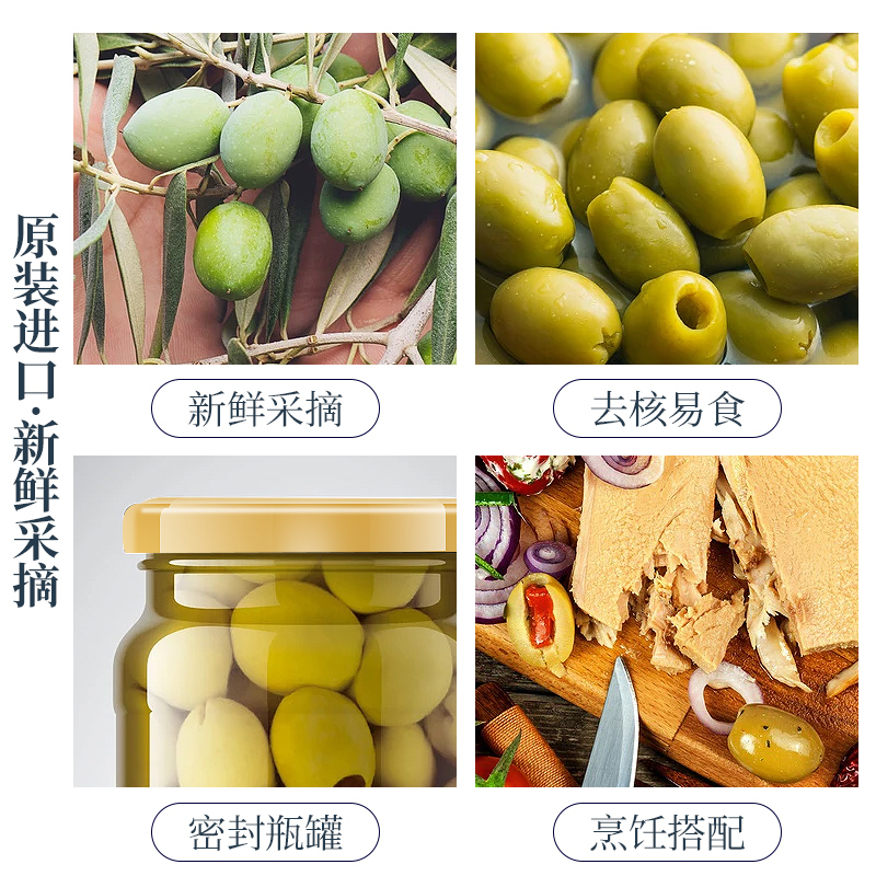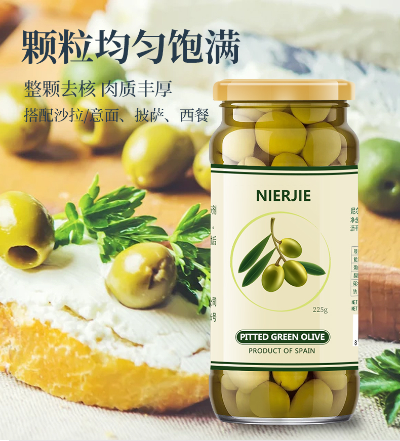 【中欧班列精选2瓶】西班牙尼尔杰去核青橄榄罐头 原装进口无核酸绿橄榄果西餐披萨配料青橄榄罐头 225g/瓶