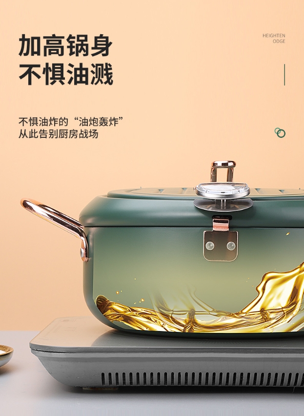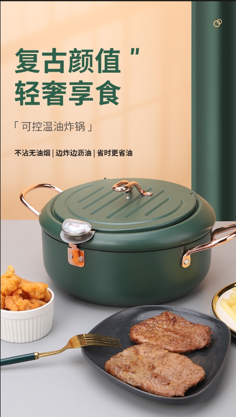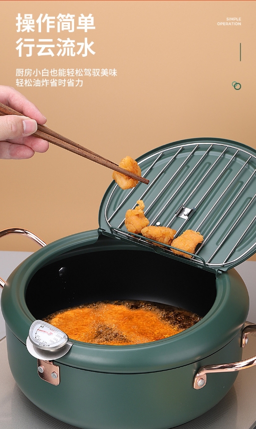 出口日本油炸锅 日式天妇罗油炸锅家用迷你不粘电磁炉燃气煎锅日本小型油锅平底锅