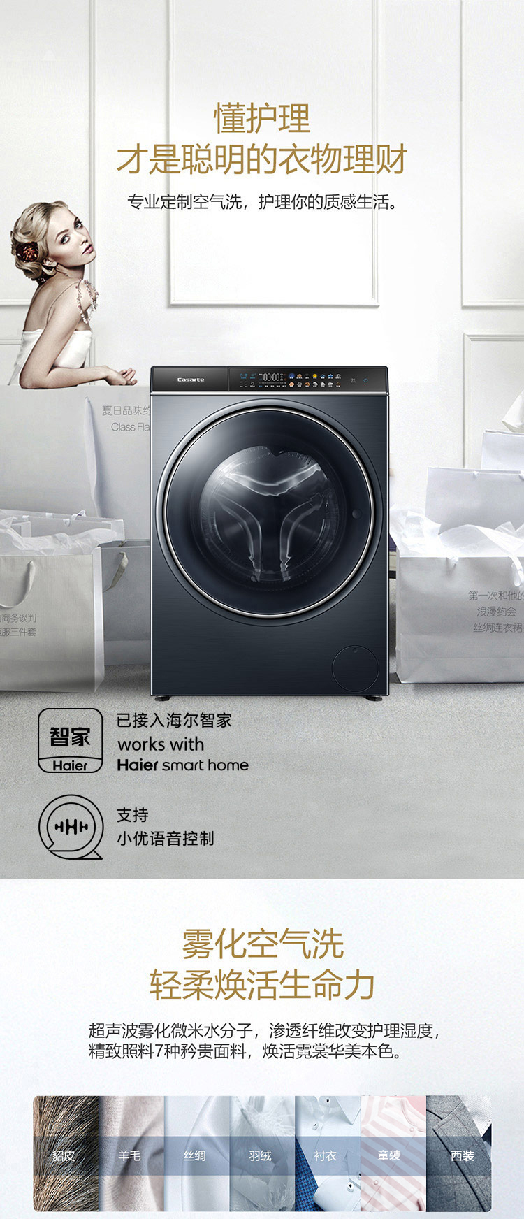 卡萨帝滚筒洗衣机洗烘一体机空气洗智能投放直驱变频10公斤C1 HD10LZ6CLU1