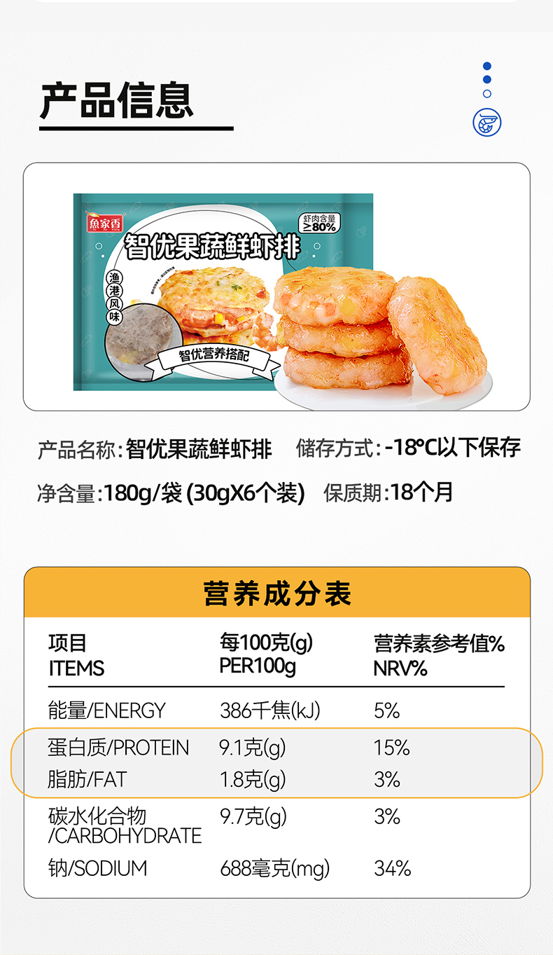 九五鲜虾排180g*2包、果蔬鲜虾排180g*2包、深海鳗鱼排180g*2包