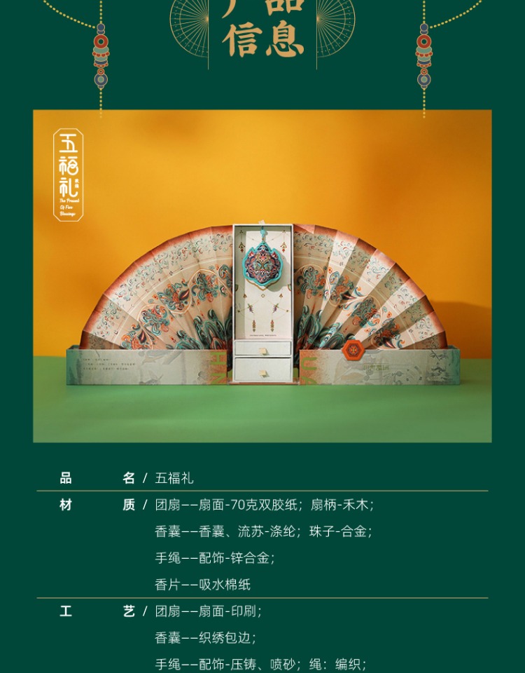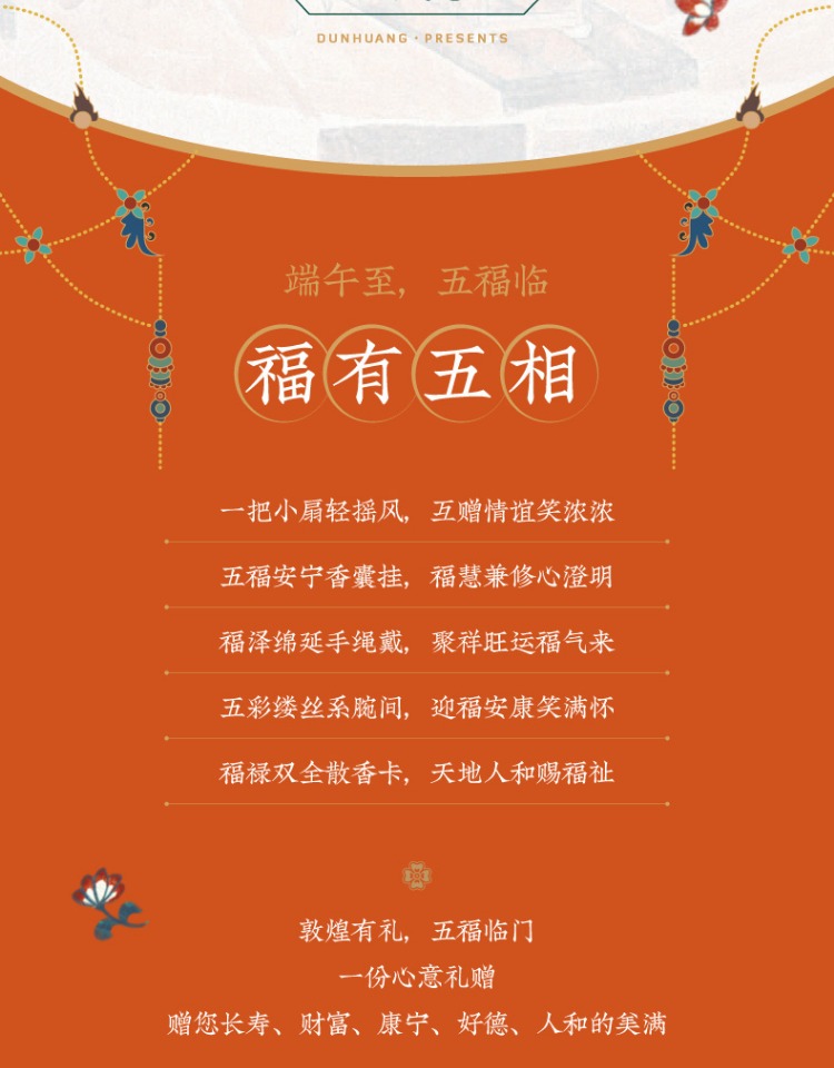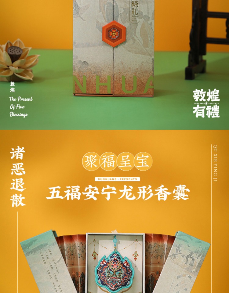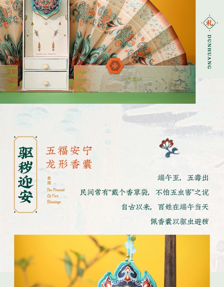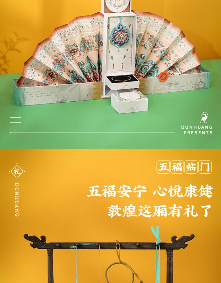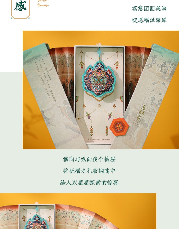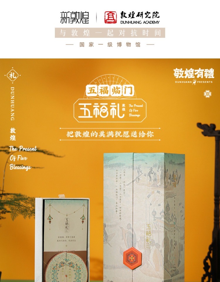 敦煌研究院 五福礼礼盒套装 博物馆文创香囊手绳团扇生日春节新年礼物