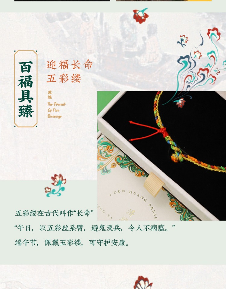 敦煌研究院五彩缕手绳 端午节五彩绳手绳编织绳2024新款手绳儿童
