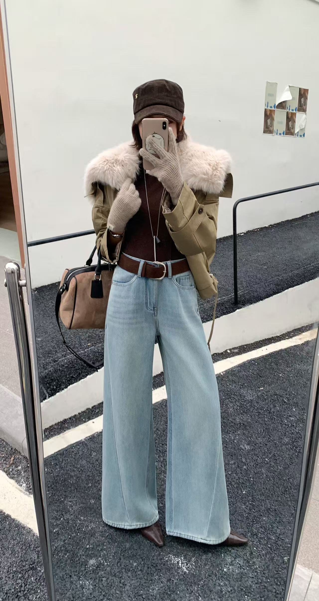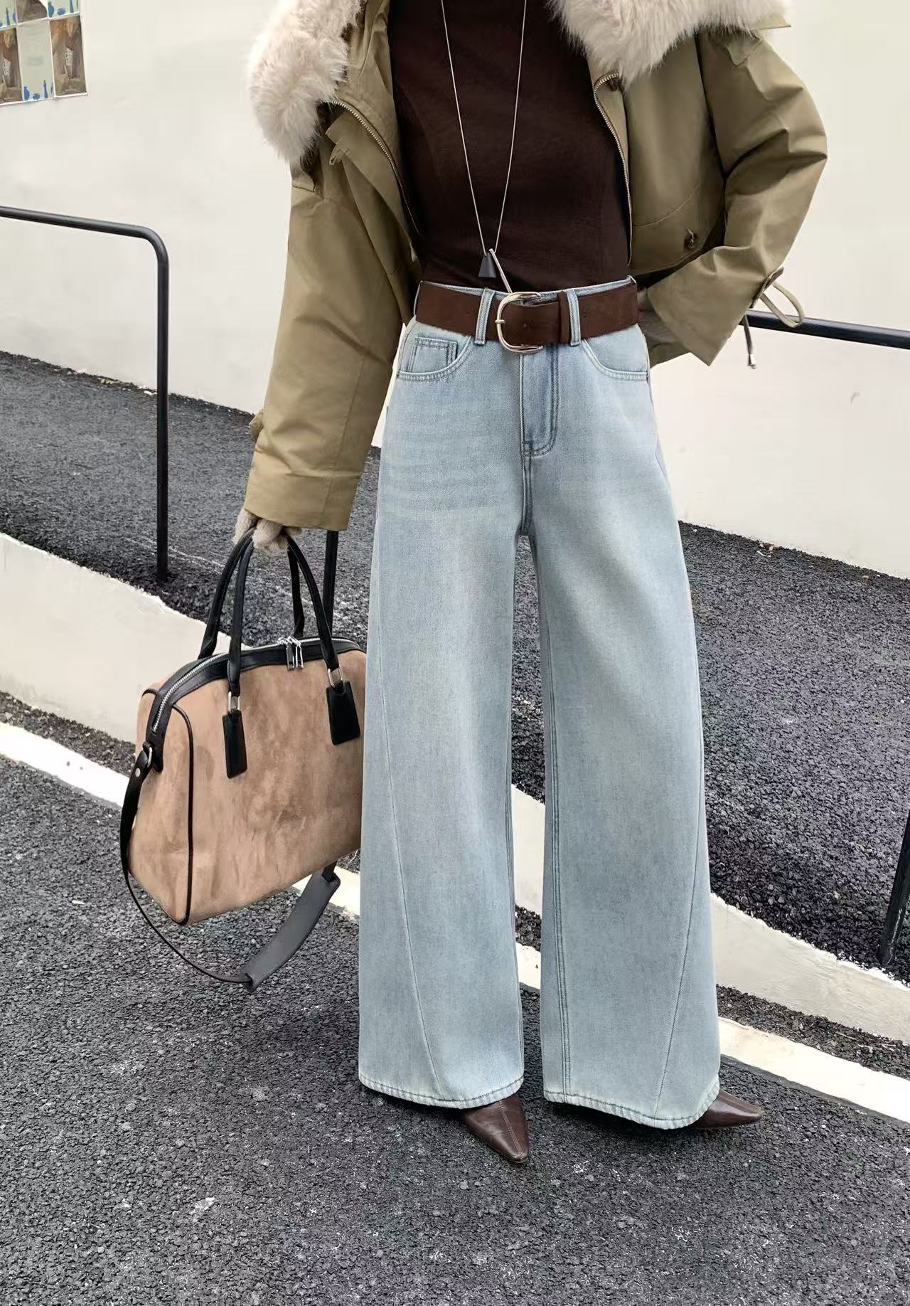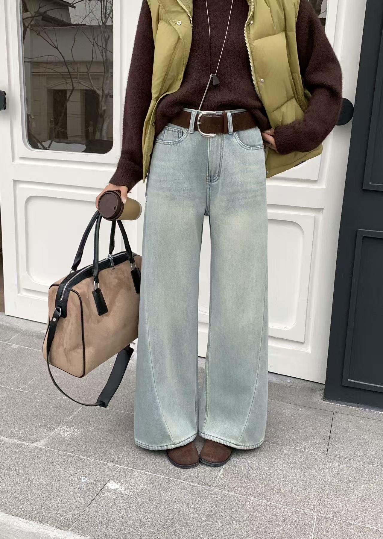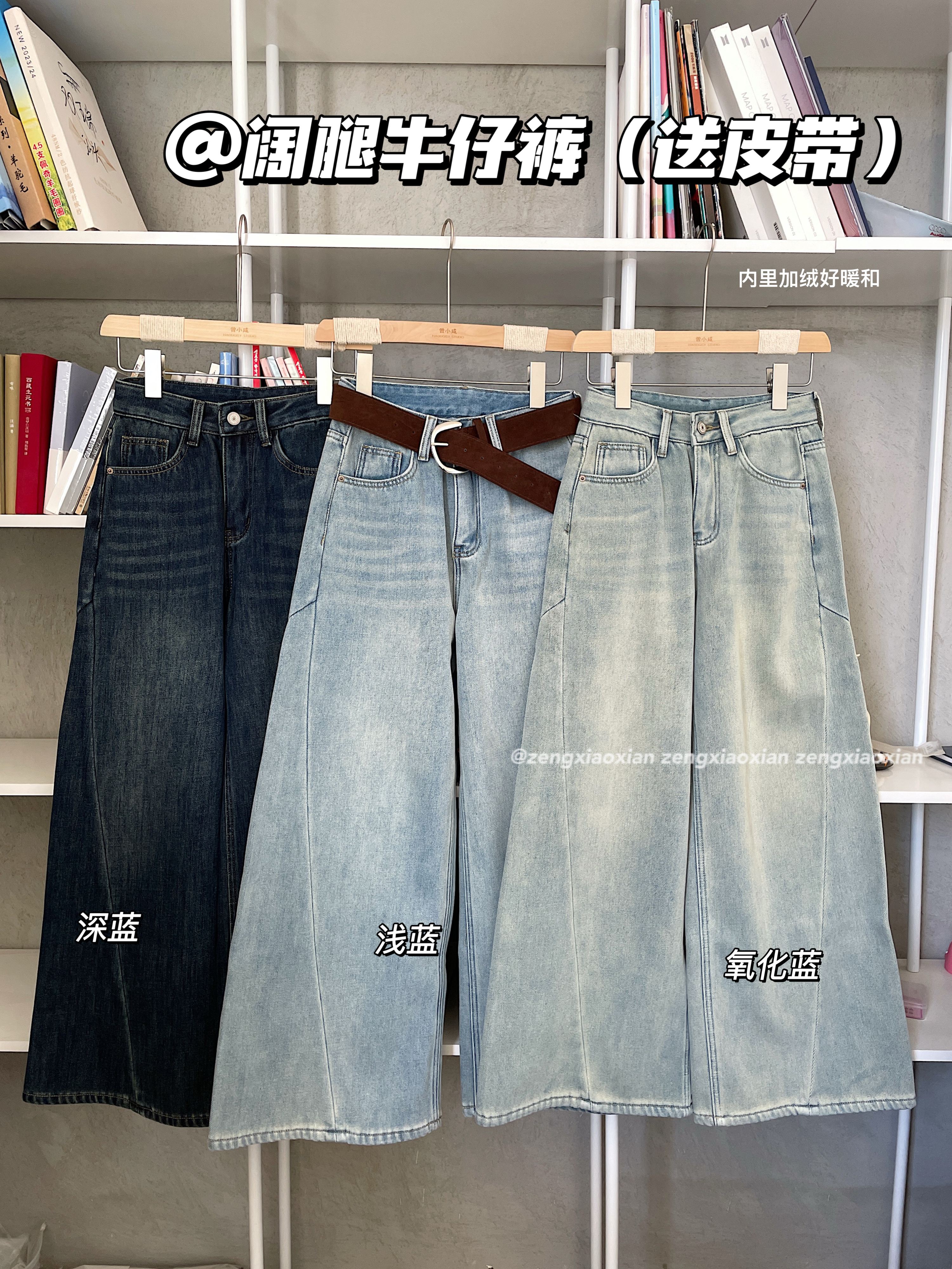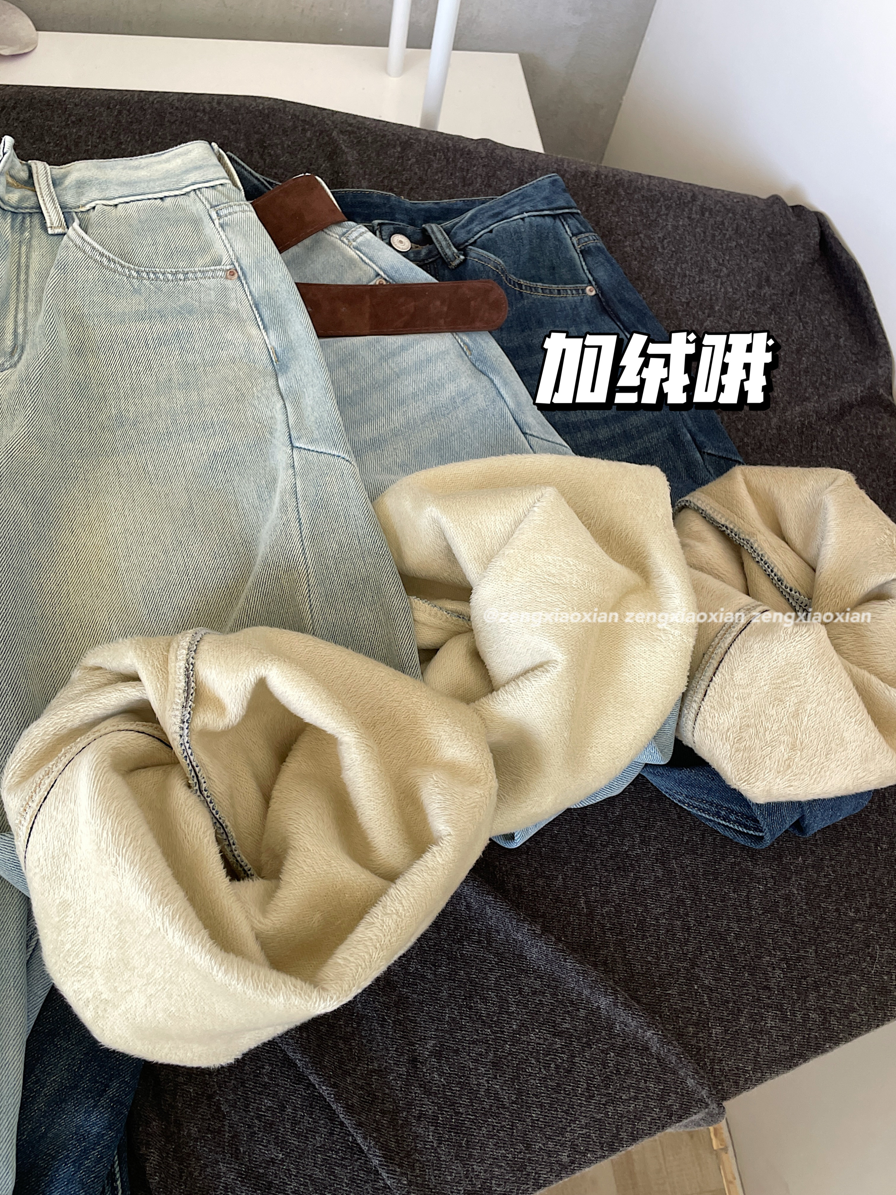 <曾小咸推荐>3色分割线加绒直筒牛仔裤(送腰带) 日常169.99/件 活动价109.99!!【预售款,预计3-15天发货】