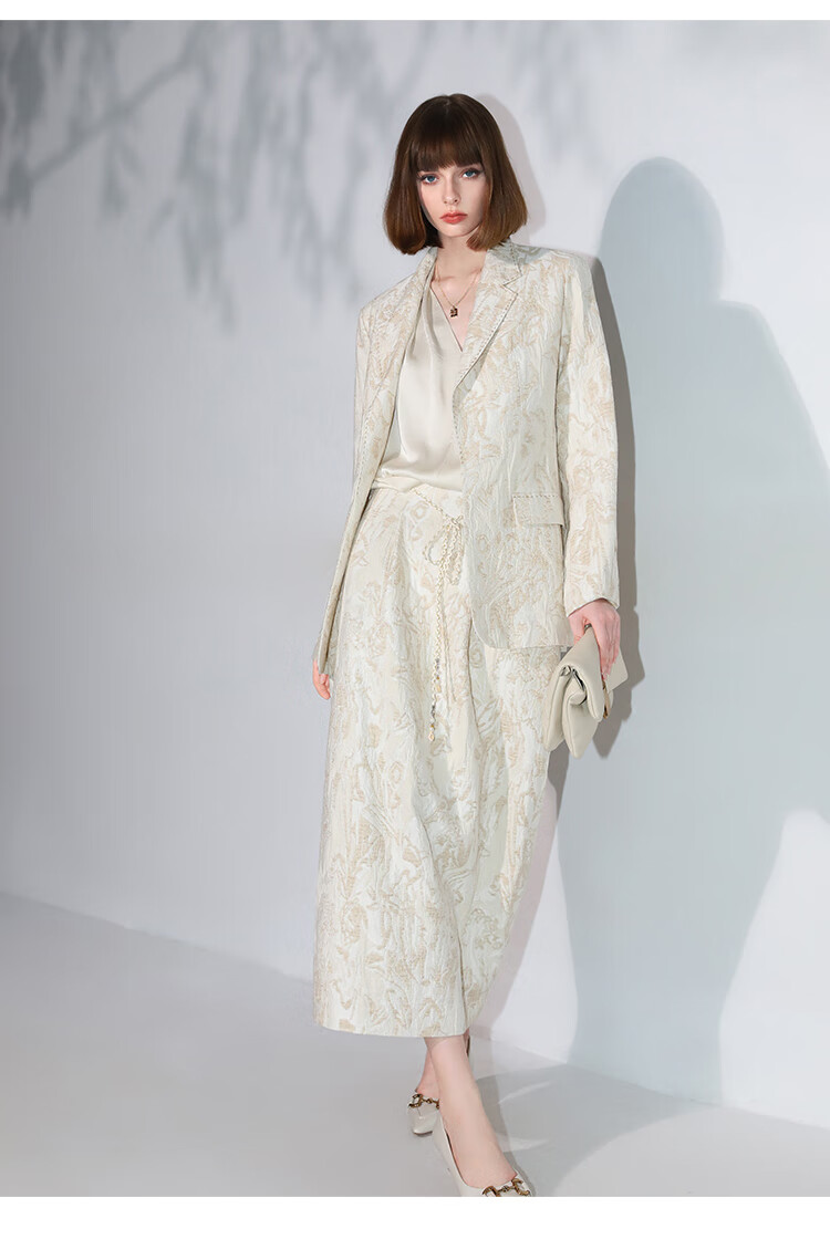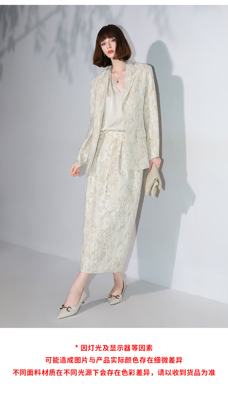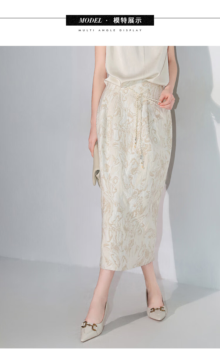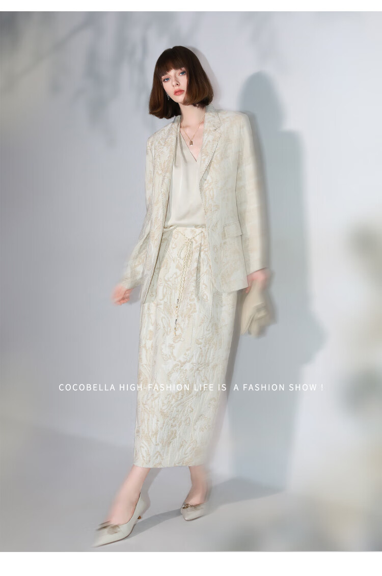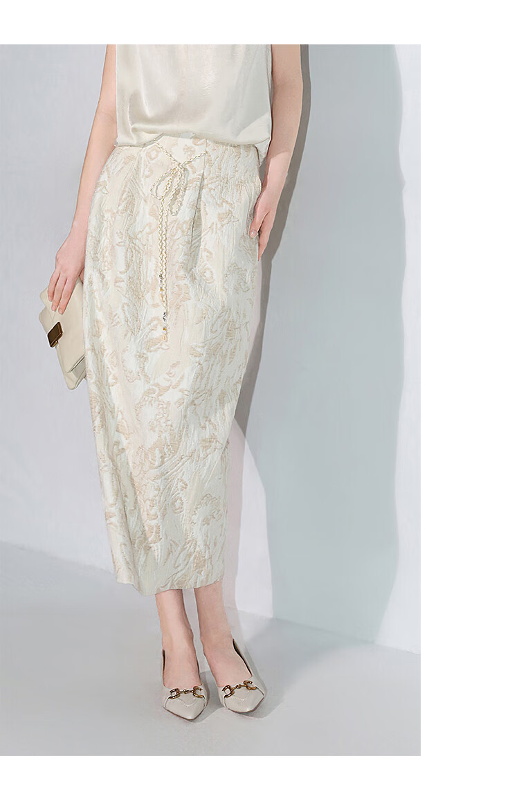 COCOBELLA肌理浮雕提花半身裙女春夏国风棉麻通勤长裙HS0032