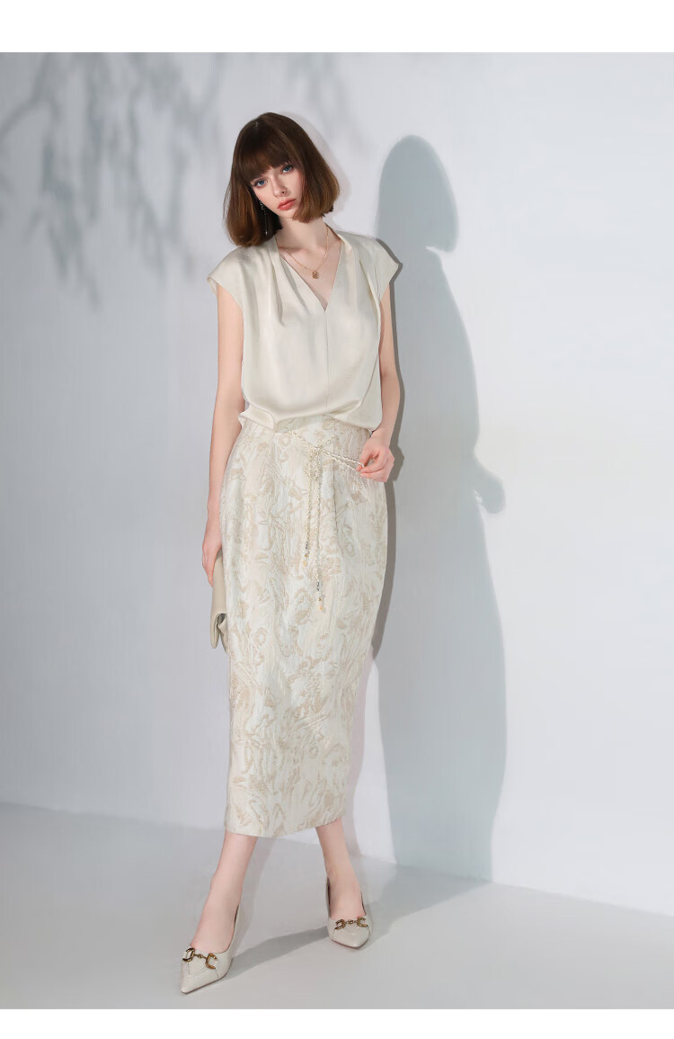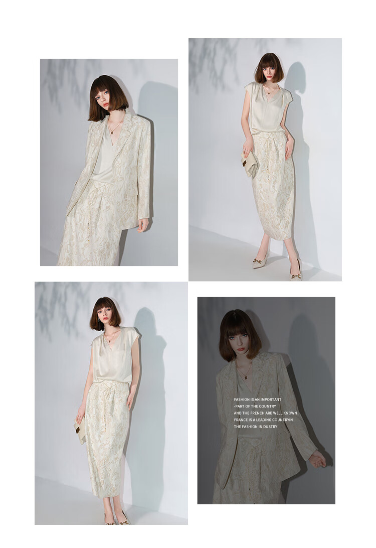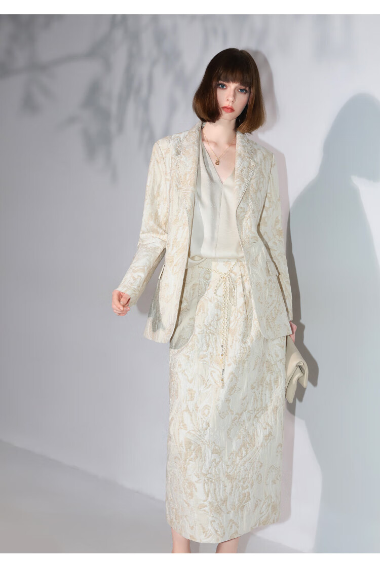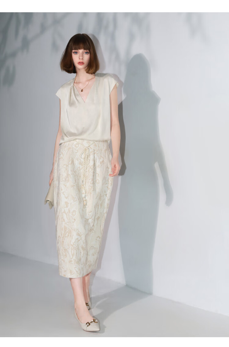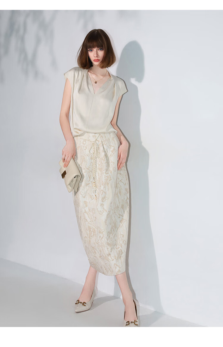 COCOBELLA肌理浮雕提花半身裙女春夏国风棉麻通勤长裙HS0032