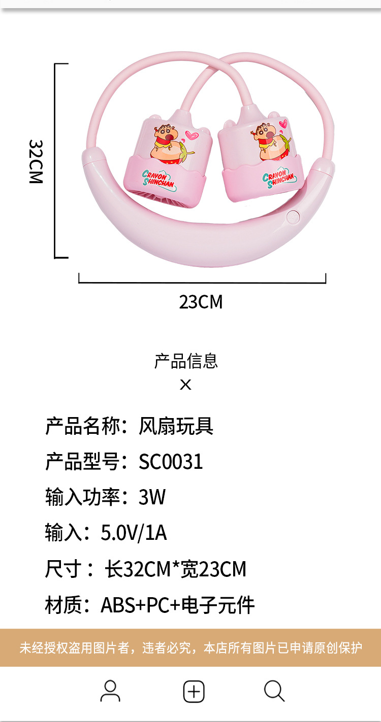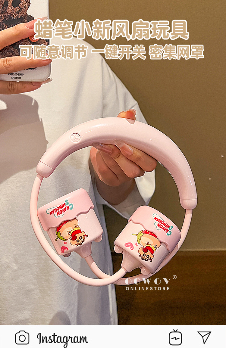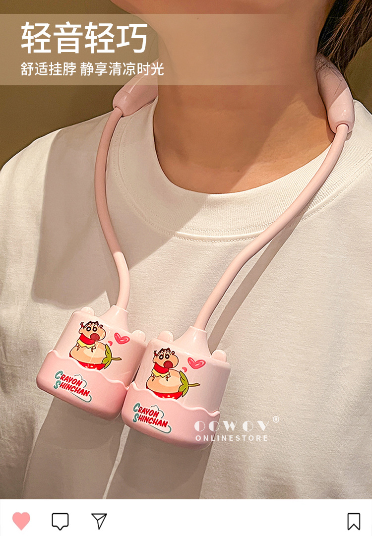 蜡笔小新挂脖式usb充电款风扇 小型随身便携 “小新陪你清凉一夏🌬️!挂脖式USB风扇,解锁随身降温新姿势❄️”