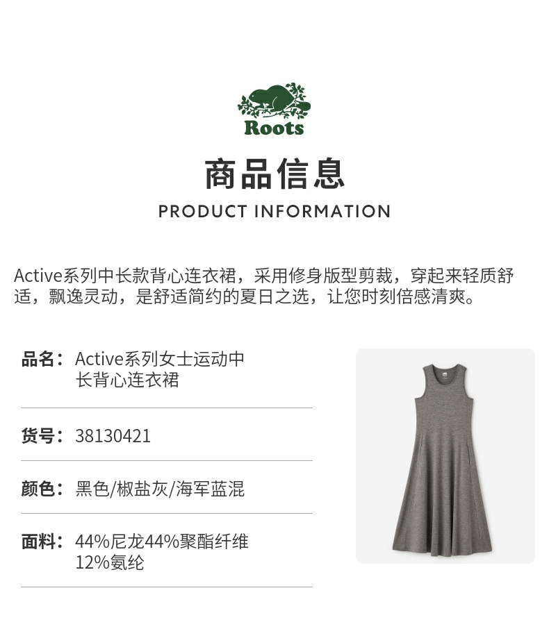 (2件9折)(多色)【Roots】女式运动中长背心连衣裙