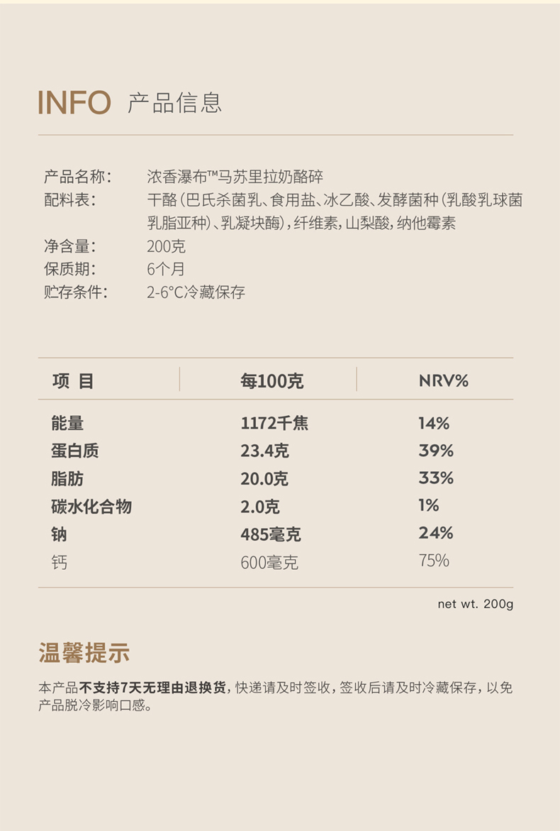 【VIP频道】浓香瀑布马苏里拉奶酪碎200g/袋