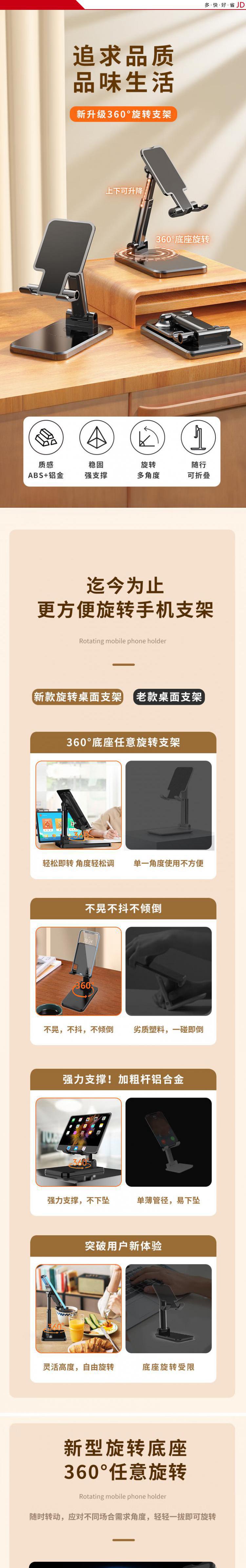 科沃ZJ05桌面旋转手机支架可折叠可升降360度旋转碳素钢多机型便捷调节