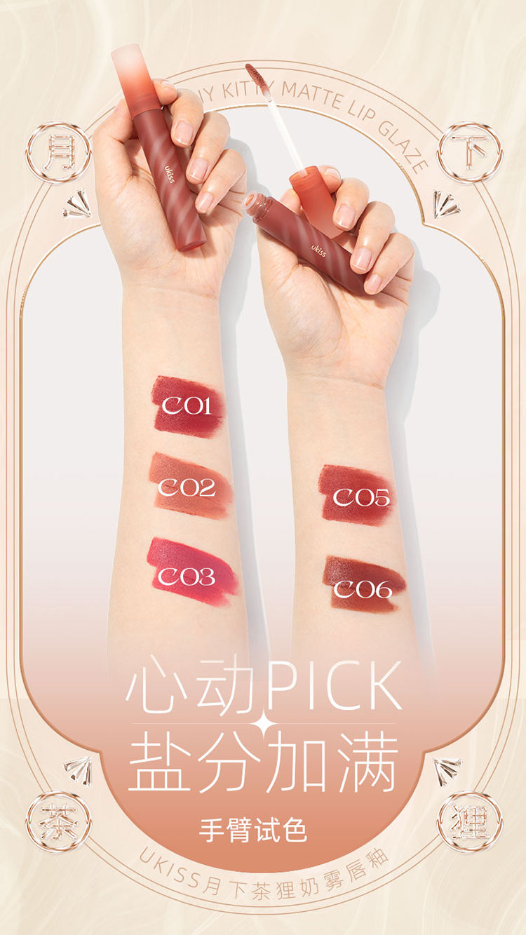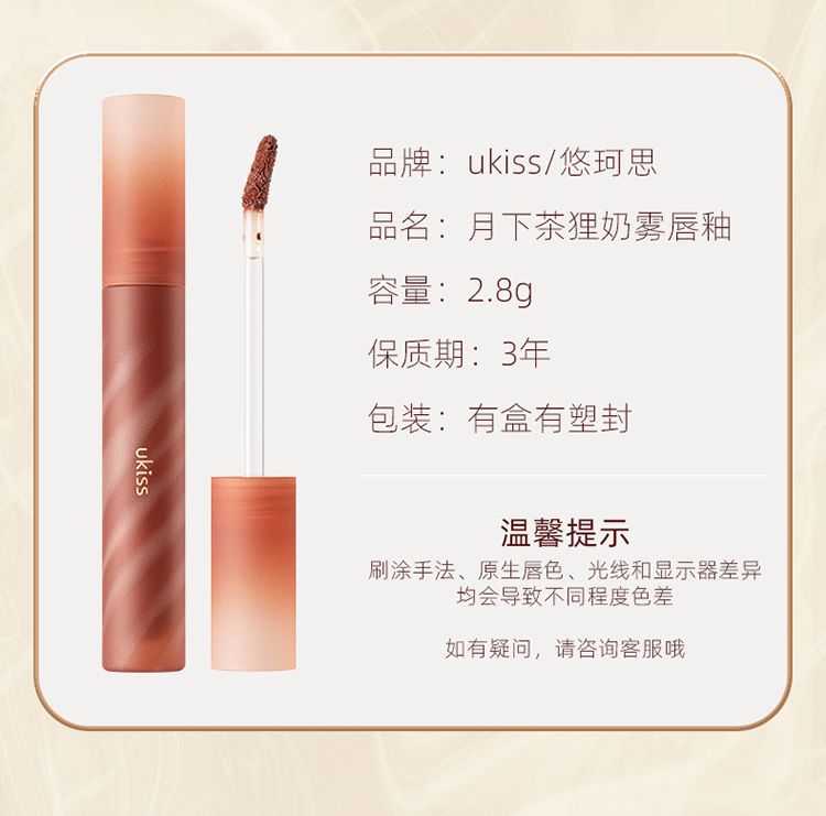 【89任选3支口红】【个顶个的显白能手!】ukiss悠珂思月下茶狸奶雾唇釉