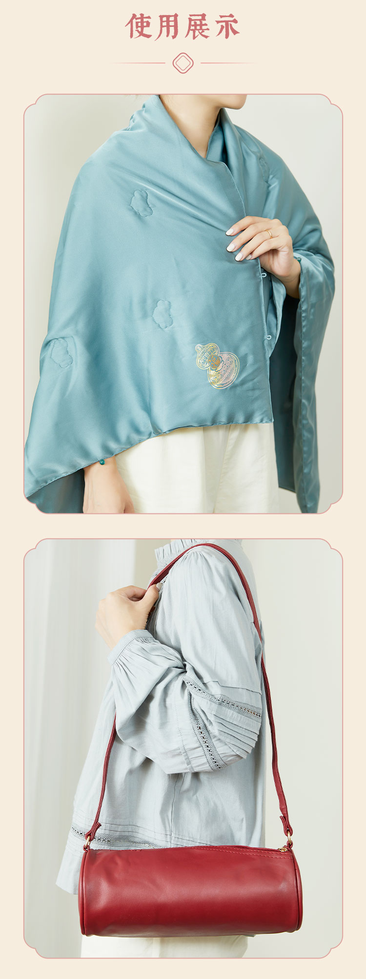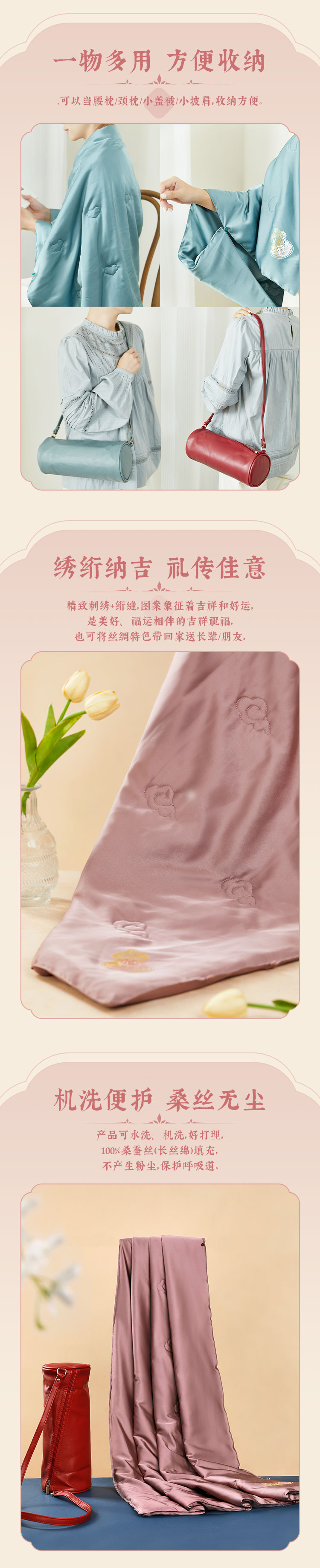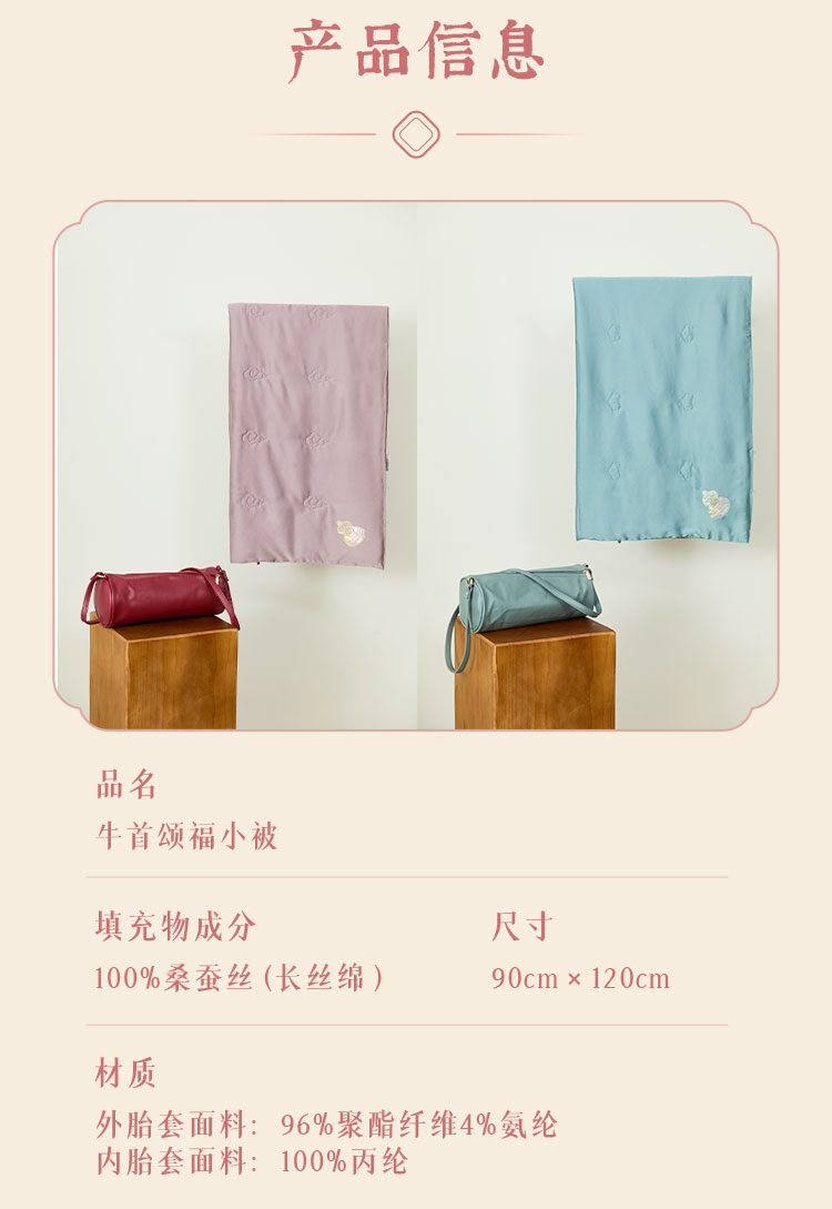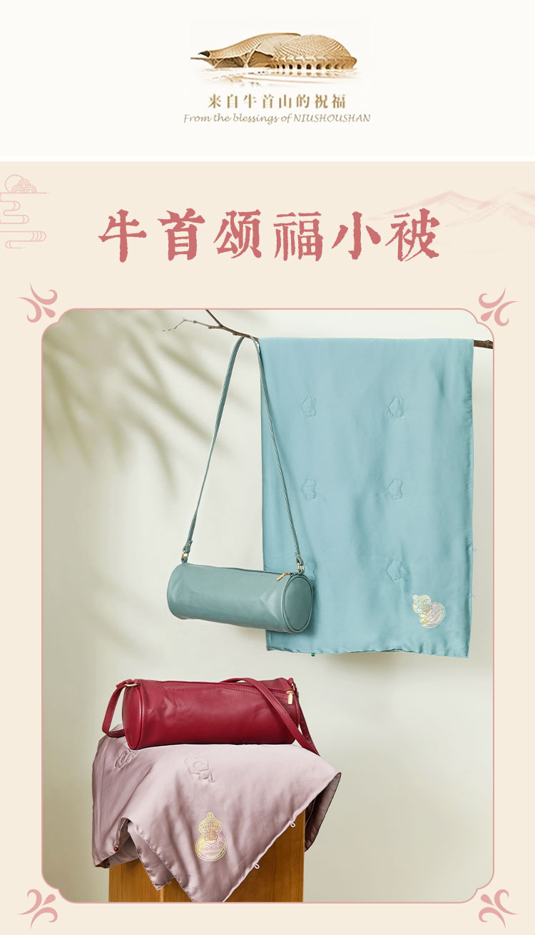 牛首山文创颂福小被可收纳腰枕颈枕桑蚕丝盖被小披肩