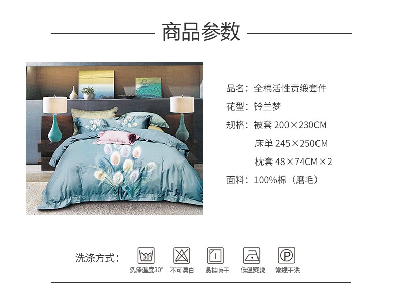 金丝莉 全棉活性贡缎四件套 铃兰梦