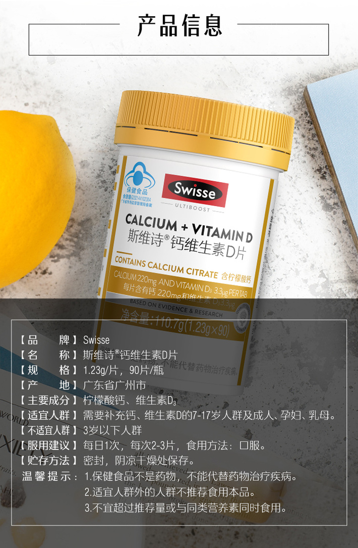 Swisse斯维诗 钙维生素D片 90片/瓶
