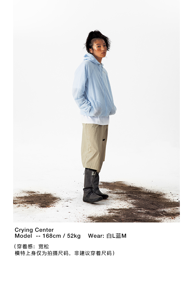 CryingCenter 雪花绒半透连帽拉链卫衣 哭喊中心
