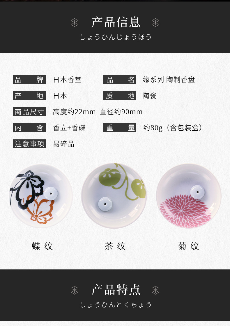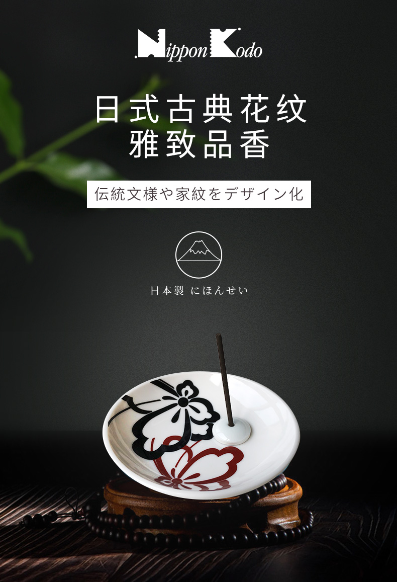 NipponKodo 日本香堂 陶制香皿&香插套装菊纹 80g