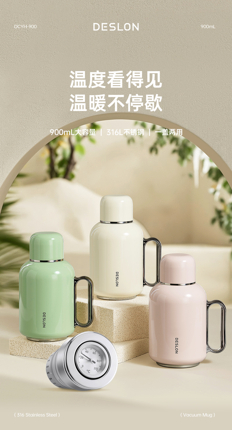 ✅900ml大容量,保温24小时,满足一整天饮水自由