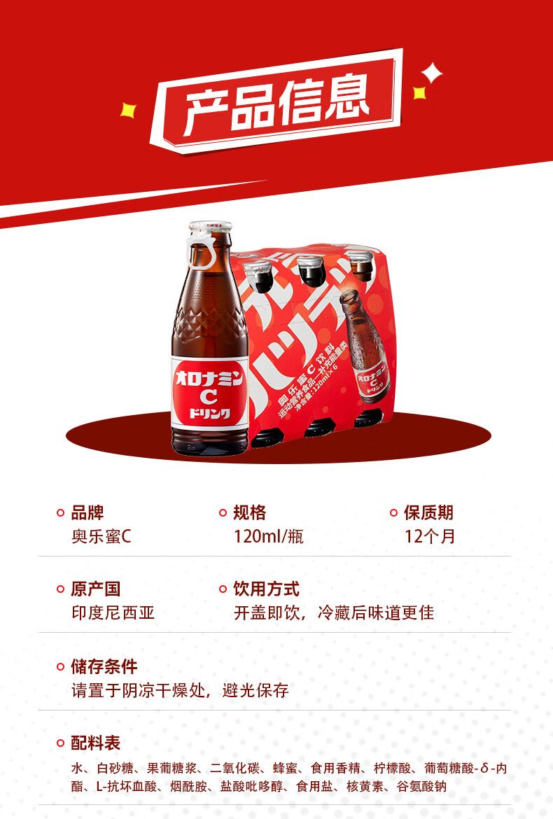 奥乐蜜C(Oronamin C)进口饮料维他命水维生素碳酸饮料0脂整箱