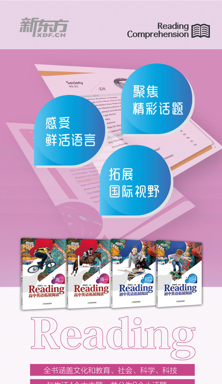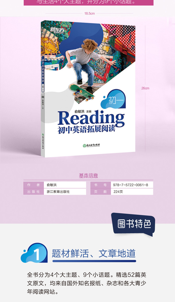 【新东方】初中英语拓展阅读:初一 题源报刊同源阅读理解精读词汇 中学生拓展阅读进阶 英文读物阅读练习书籍 俞敏洪网课 新东方英语