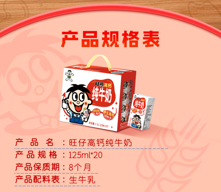 旺仔高钙纯牛奶