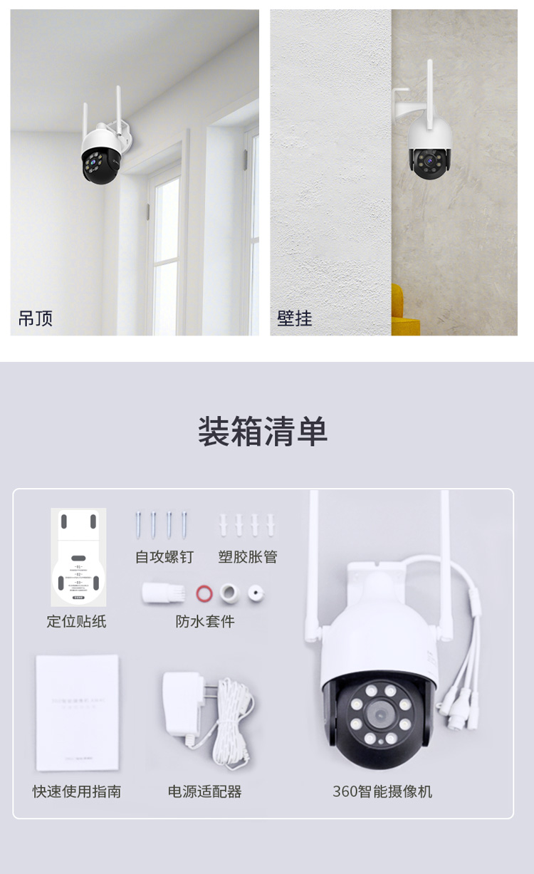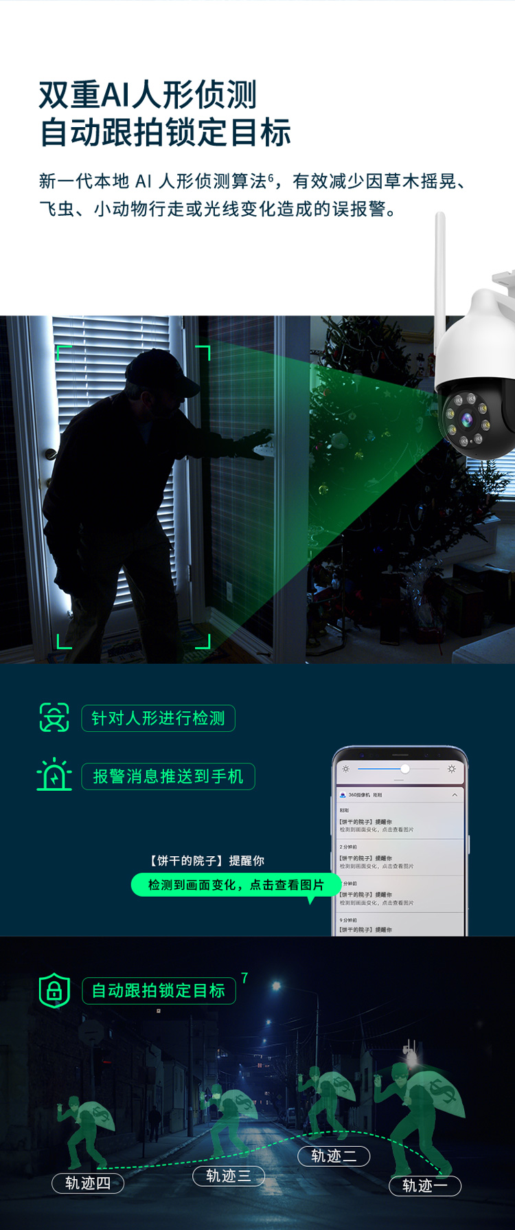 【专属】360 摄像头智能监控摄像机 300W室外户外防水监控声光报警 2K高清智能全彩夜视wifi云台球机5C无线畅联版AW4C
