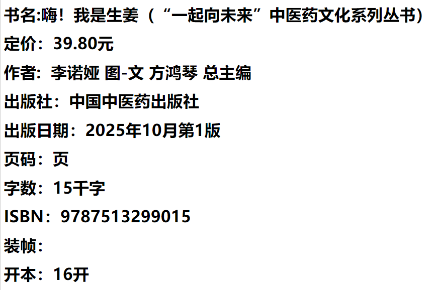 嗨!我是生姜 李诺娅 图-文 (“一起向未来”中医药文化系列丛书)方鸿琴 总主编 中国中医药出版社