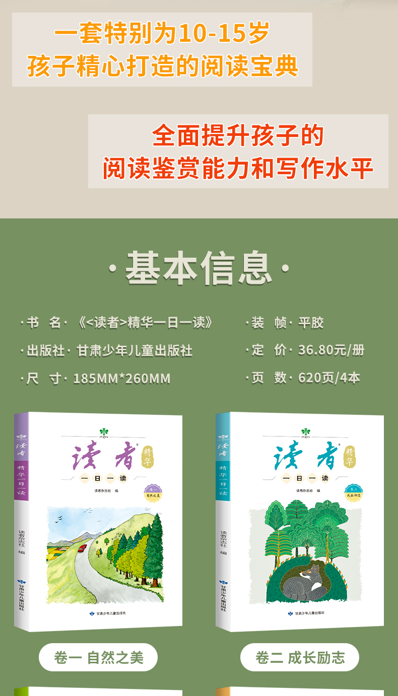 读者精华一日一读(4册) 10-16岁作文素材 成长励志 自然之美