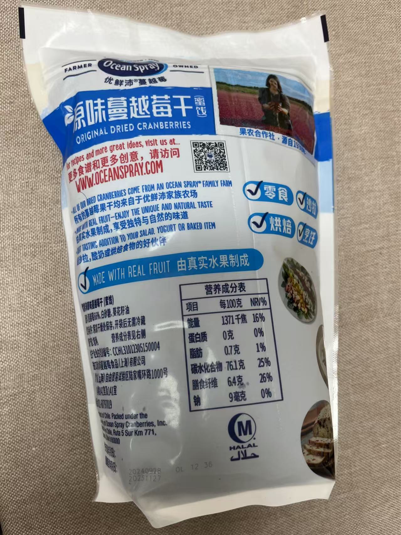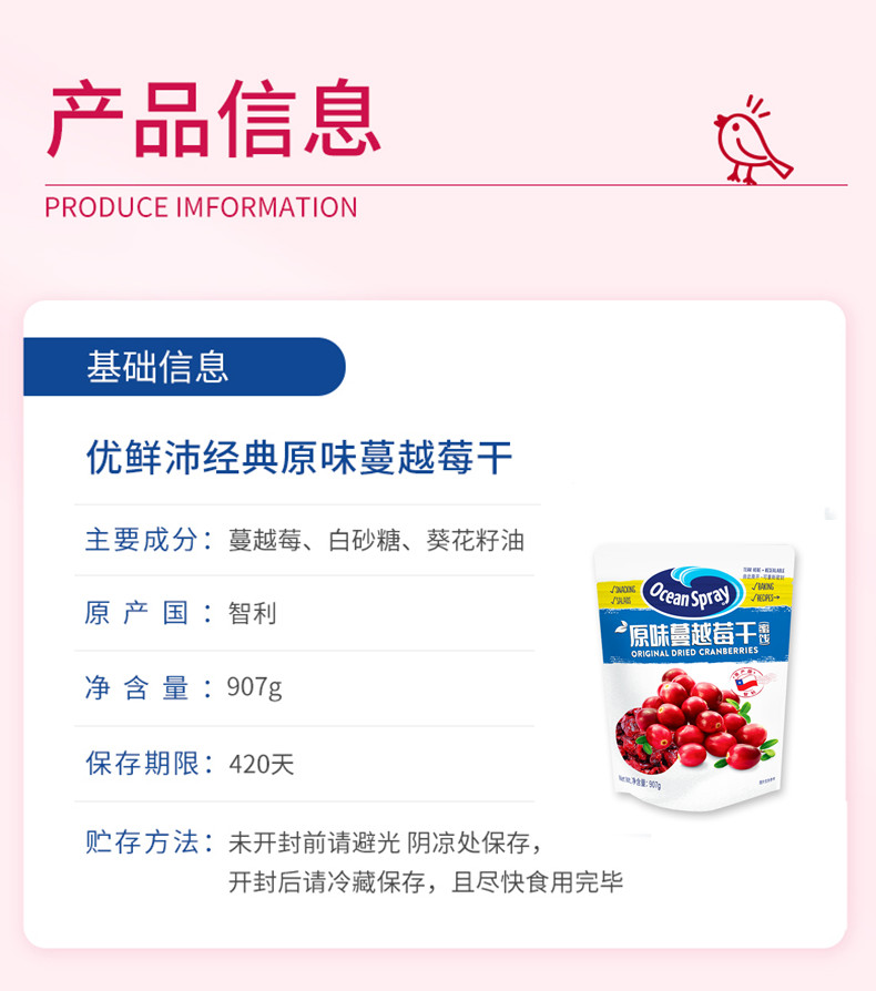 【产品名称】优鲜沛Ocean spray蔓越莓干