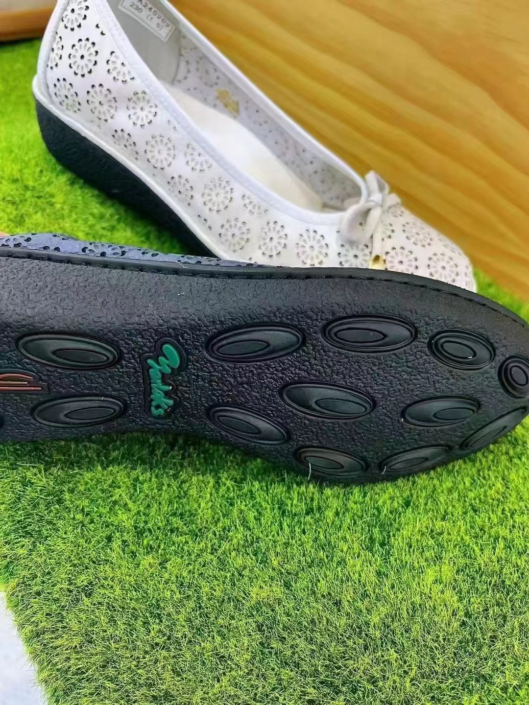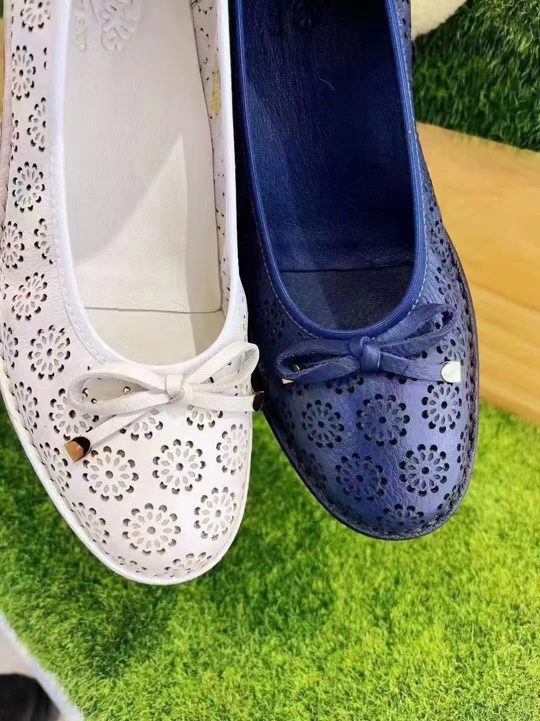 雅乐士春夏女头层软牛皮镂空花纹坡跟舒适浅口单鞋