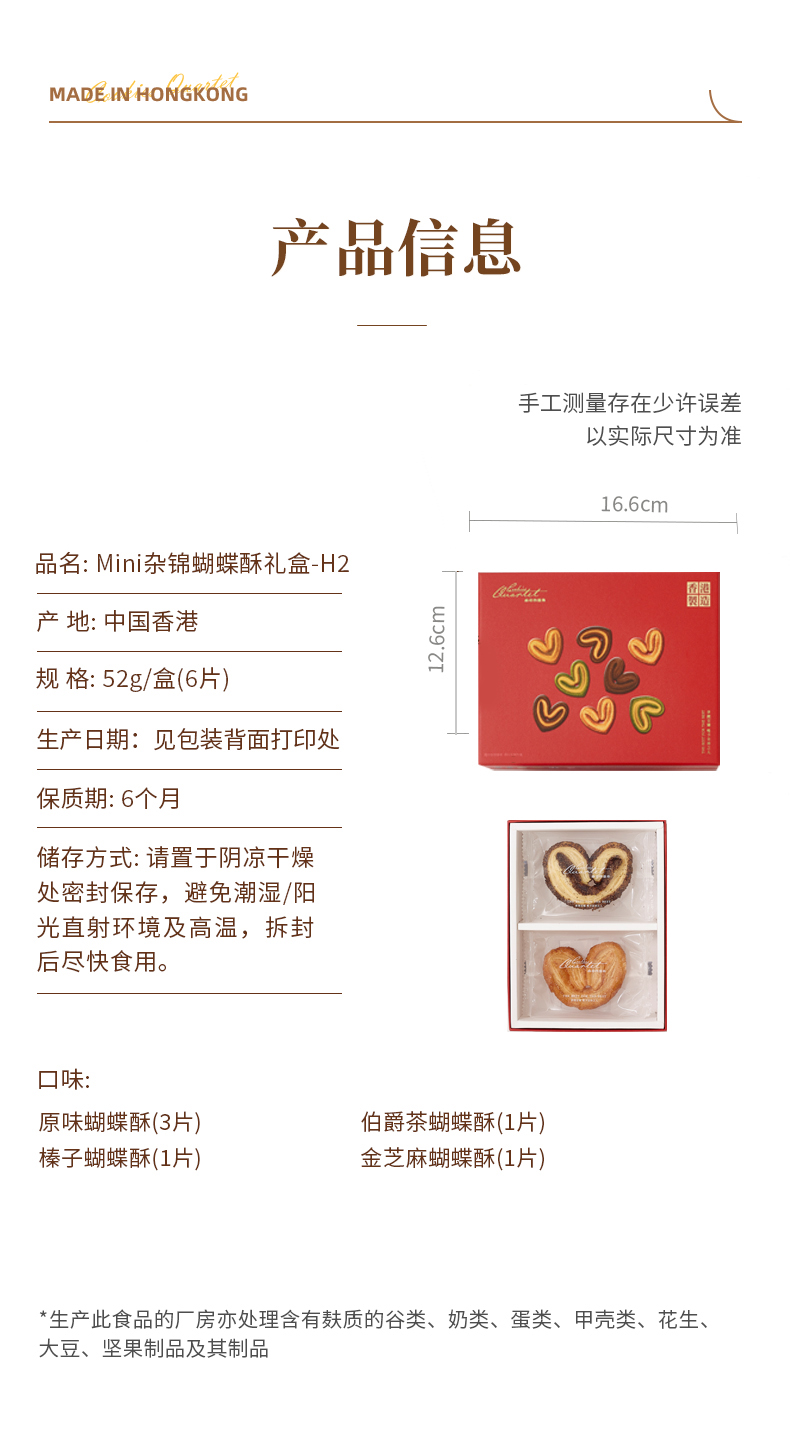 曲奇四重奏Mini杂锦蝴蝶酥礼盒52g/盒(6片)