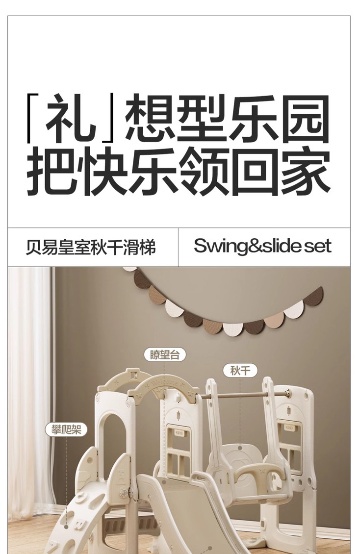 贝易宝宝滑梯攀爬架室内家用儿童秋千滑滑梯三合一多功能游乐场【会员下单送伙伴龙故事机。还可领券下单】