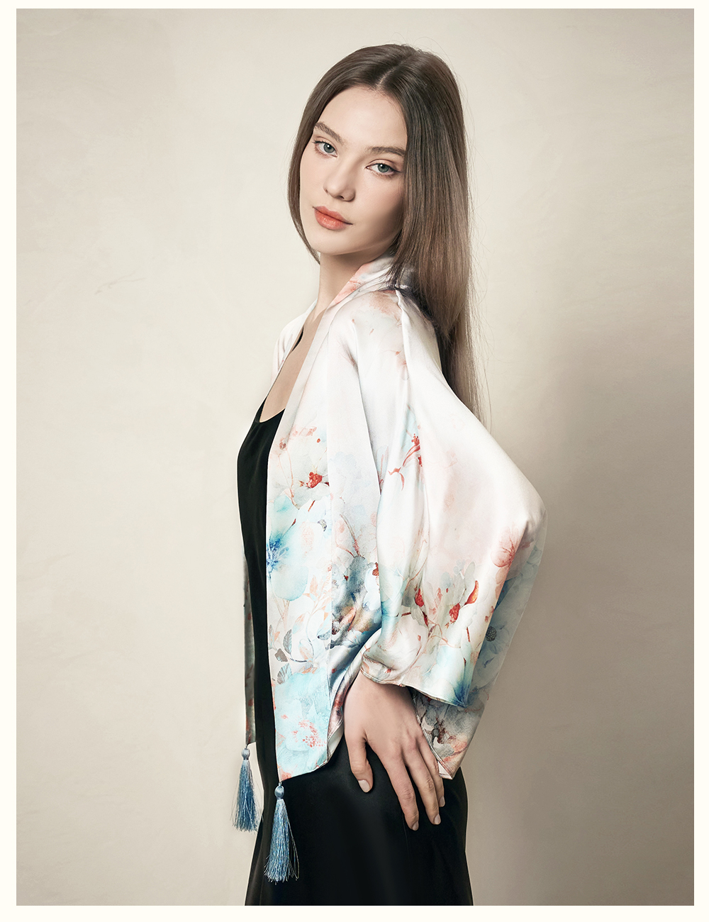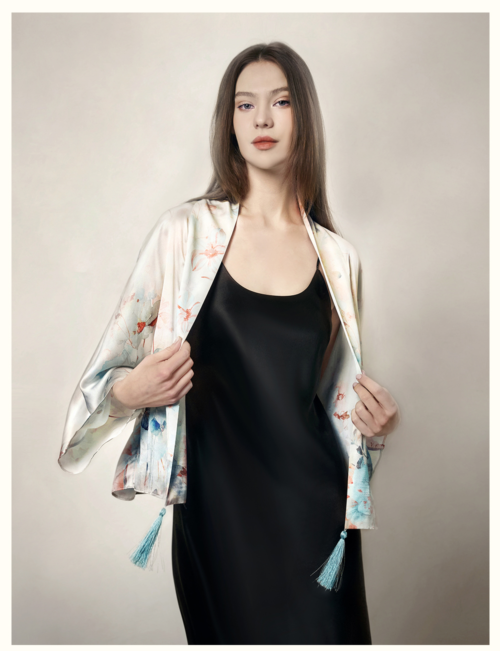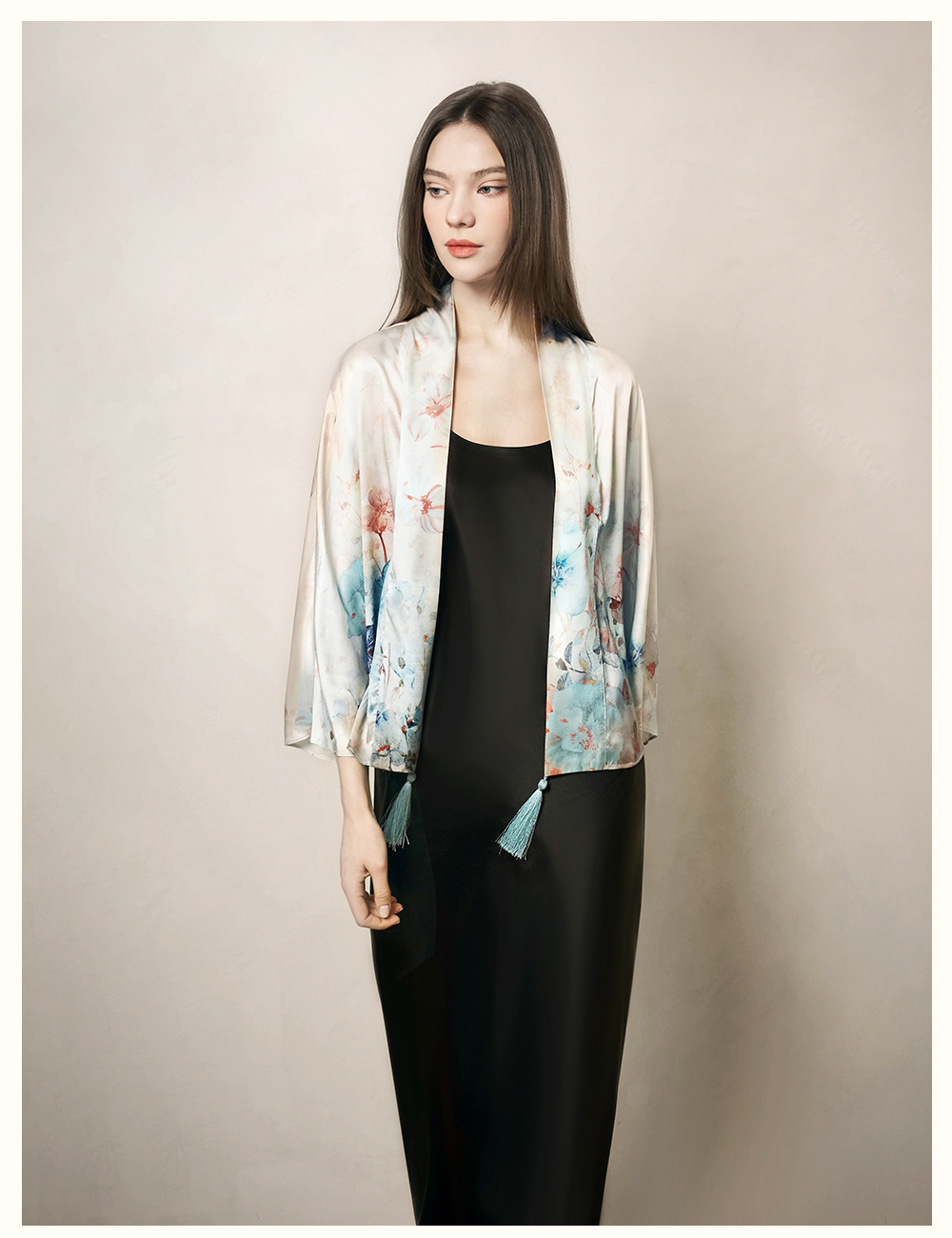 Soloseta22姆米真丝披肩外套上衣桑蚕丝印花丝巾2025秋冬新品送礼