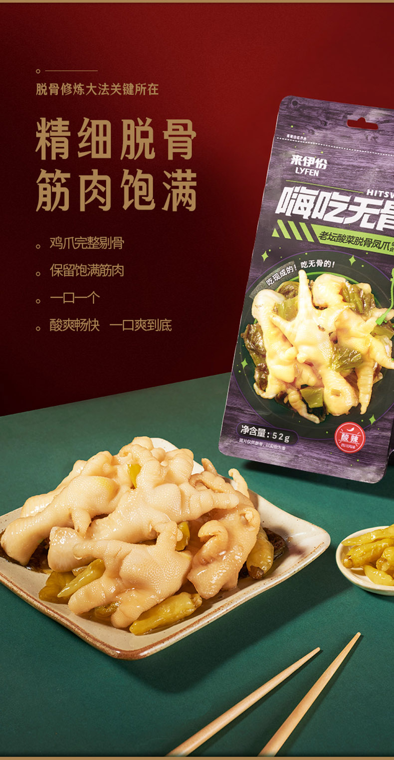 来伊份 老坛酸菜脱骨凤爪 52g*3