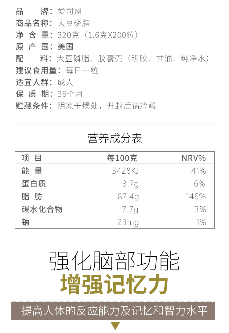 ESMOND 爱司盟 大豆磷脂软胶囊 200粒/瓶