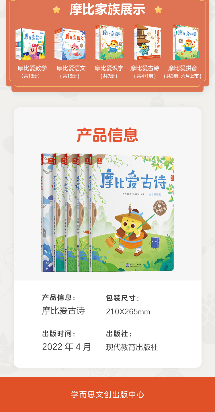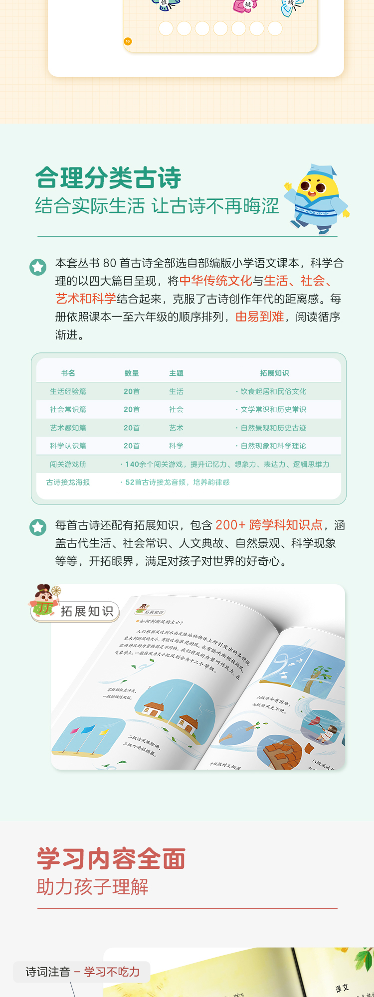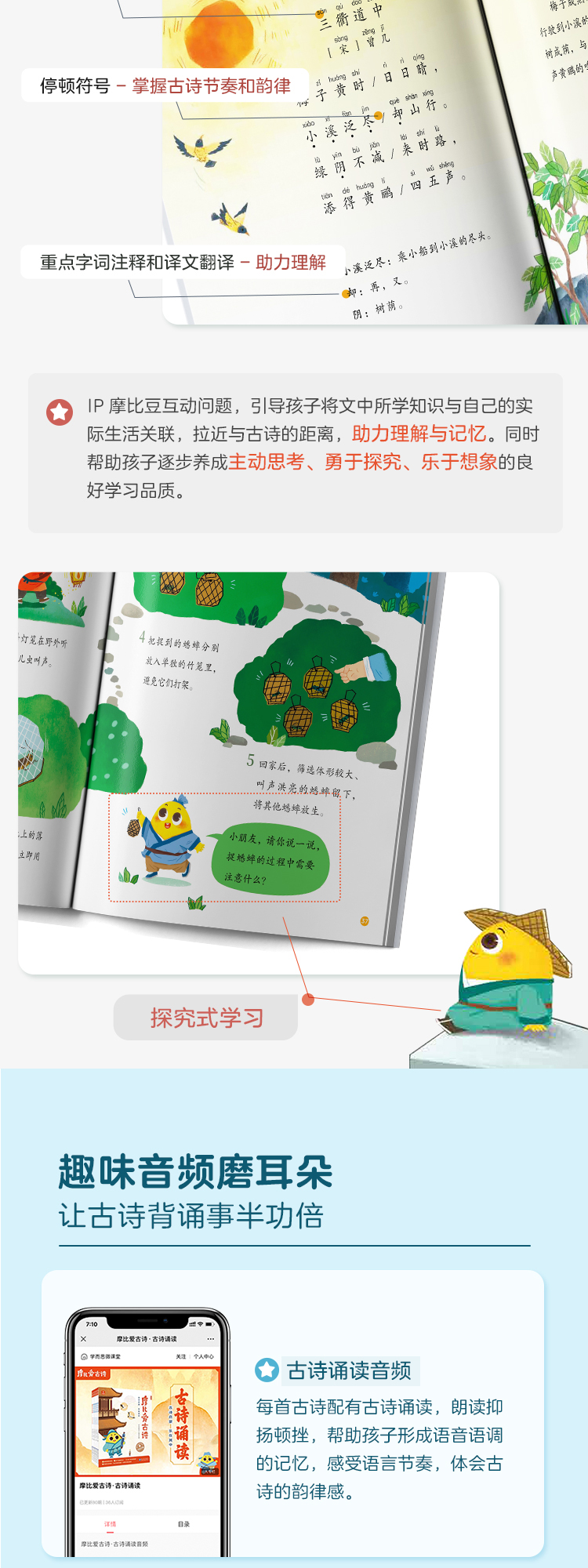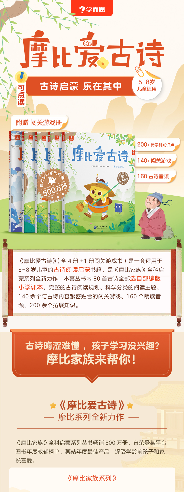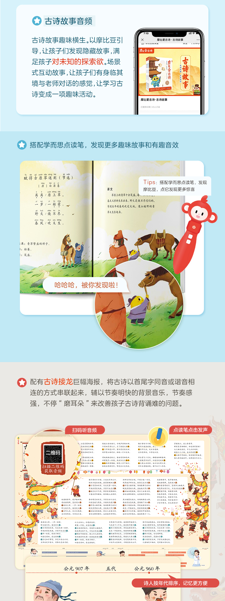 【摩比爱古诗】80首古诗 160个音频 140+游戏内容 200+跨学科知识点;5-8岁 全5册可点读