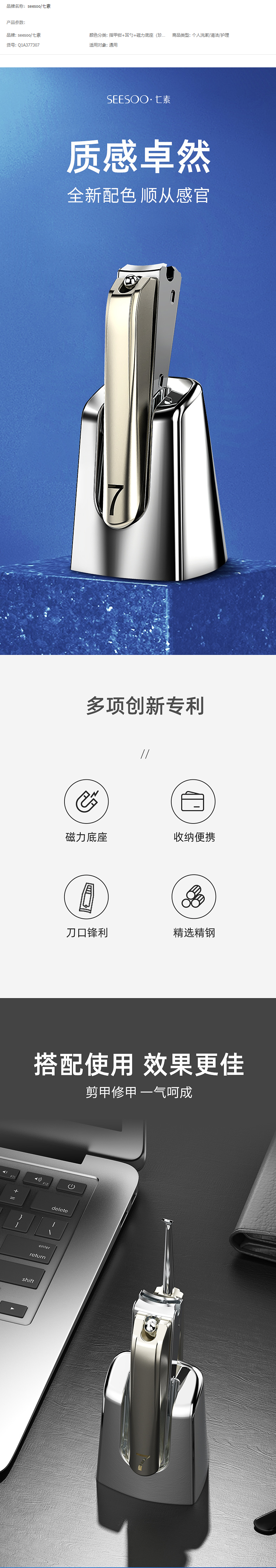 七素SEESOO 指甲刀套装防飞溅家用大号斜口鹰嘴指甲钳成人便携单个指甲剪 Q1A377307