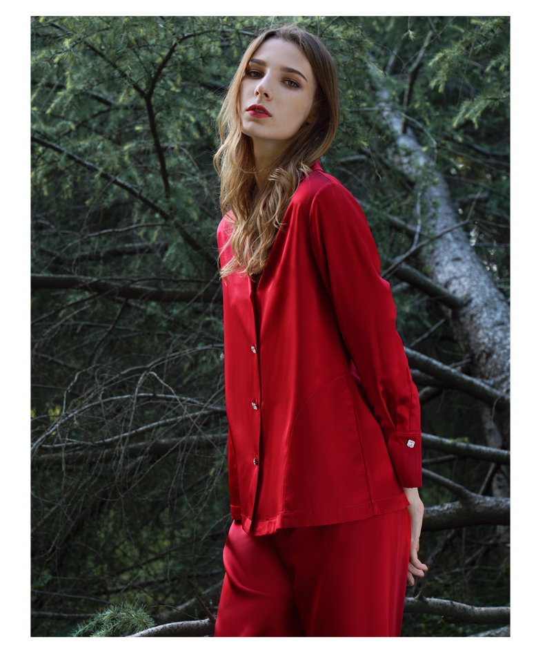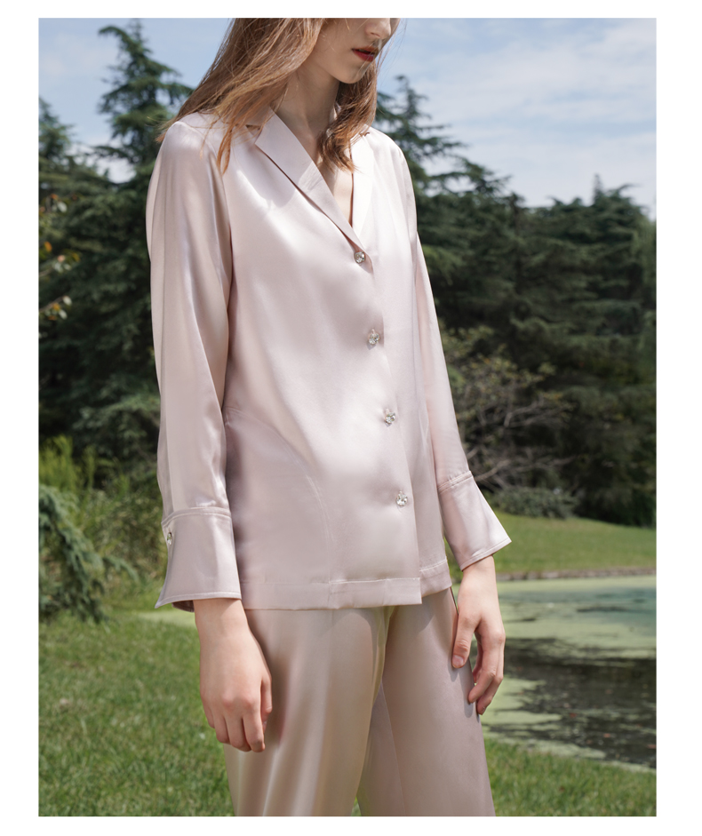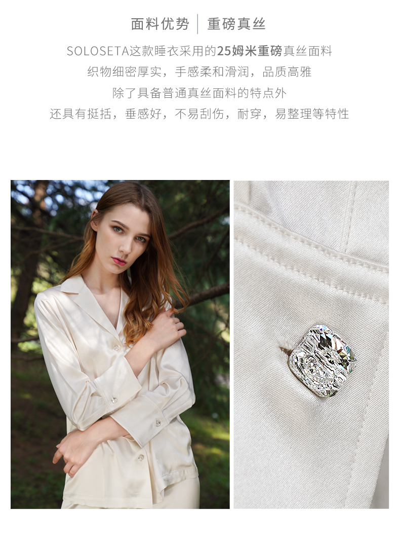 Solo seta重磅25姆米真丝睡衣女士套装丝绸家居服高级感外穿秋冬